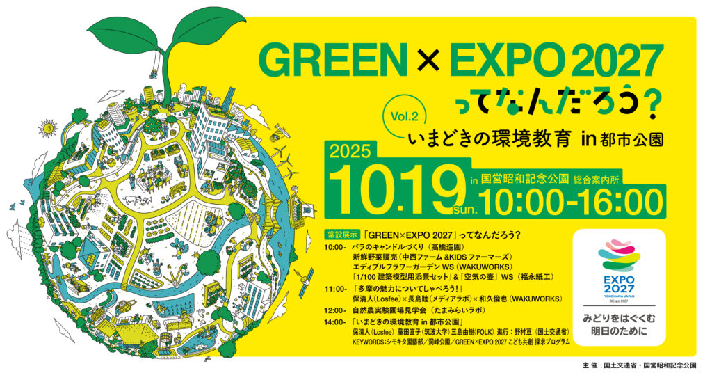 GREEN×EXPO 2027や都市公園などでの環境教育の可能性についてのトークショーと並行し、新鮮野菜の発売や様々なワークショップを実施します。