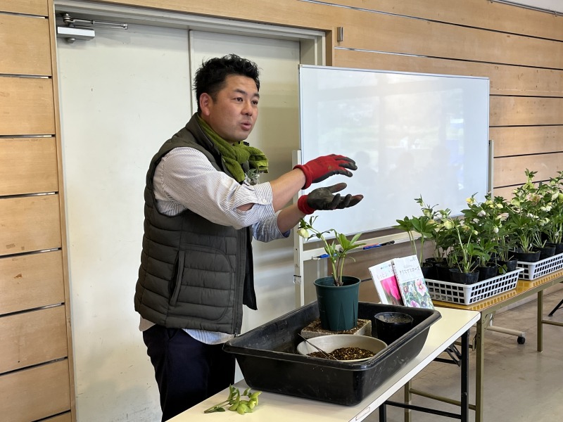 早春の花であるクリスマスローズやアネモネの魅力を、横山さんに熱く語っていただきます!植え替えのデモンストレーションや、露地の花の解説も行います。
