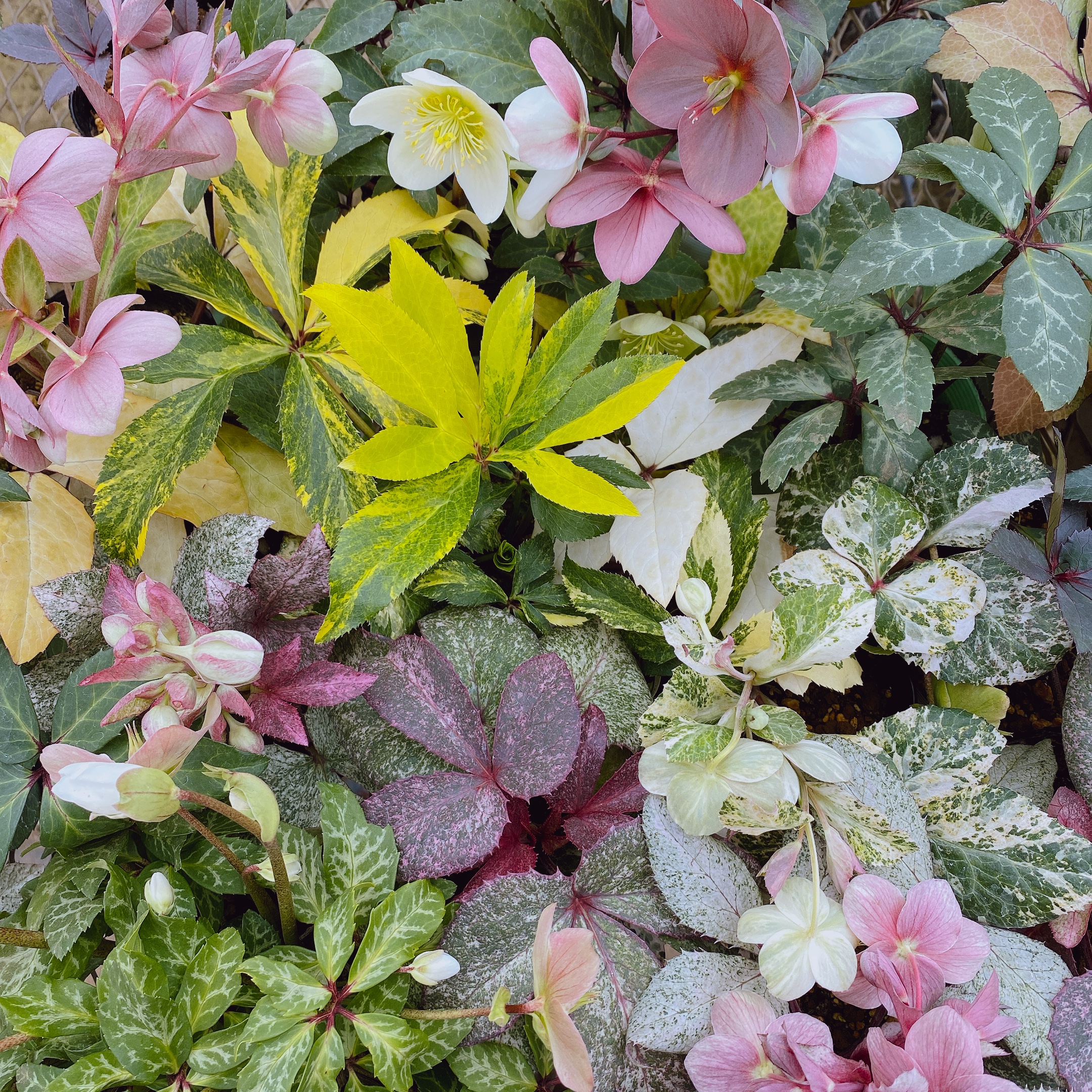 葉の色が特徴のカラーリーフクリスマスローズの寄せ植えを作る体験です。