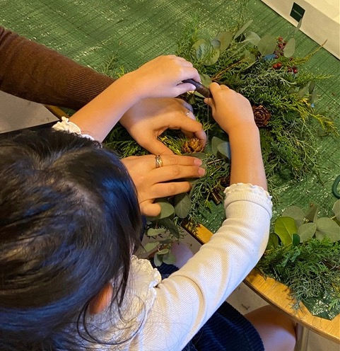 お子様と一緒に参加するワークショップです。 親子で協力してクリスマスのリースを作ります。 何かと忙しい年末ですが、針葉樹の香りで子どもと一緒に癒されましょう。