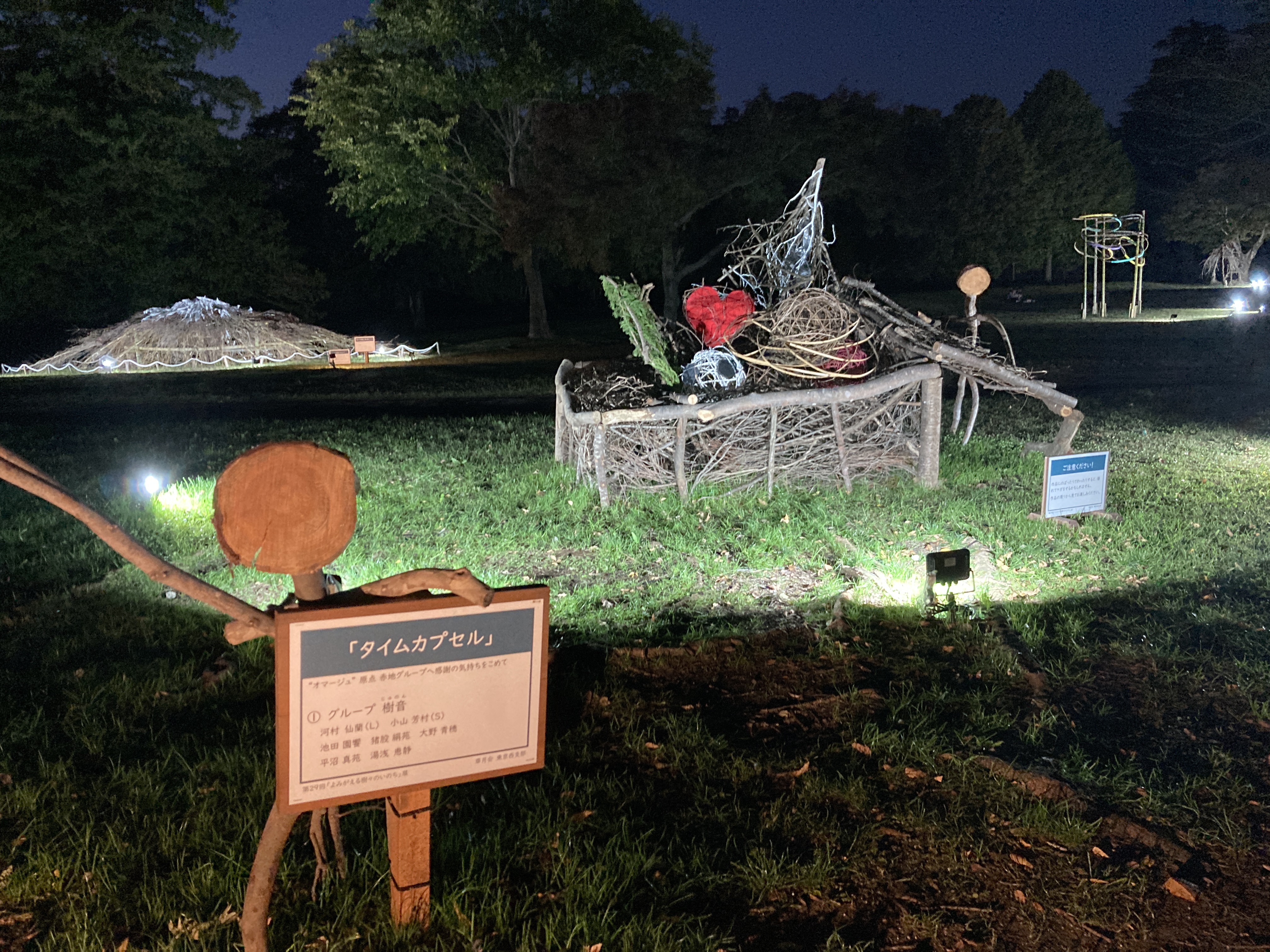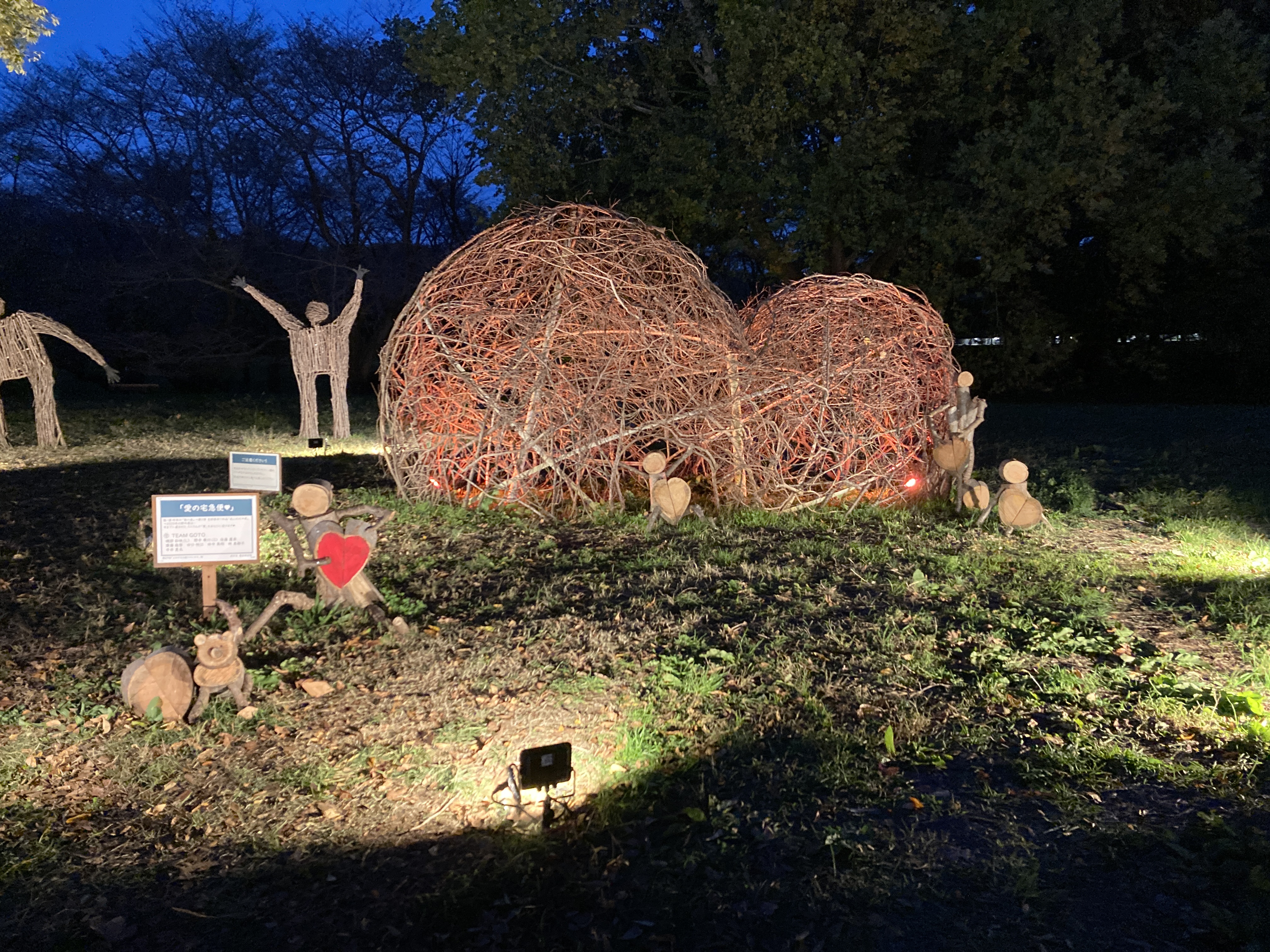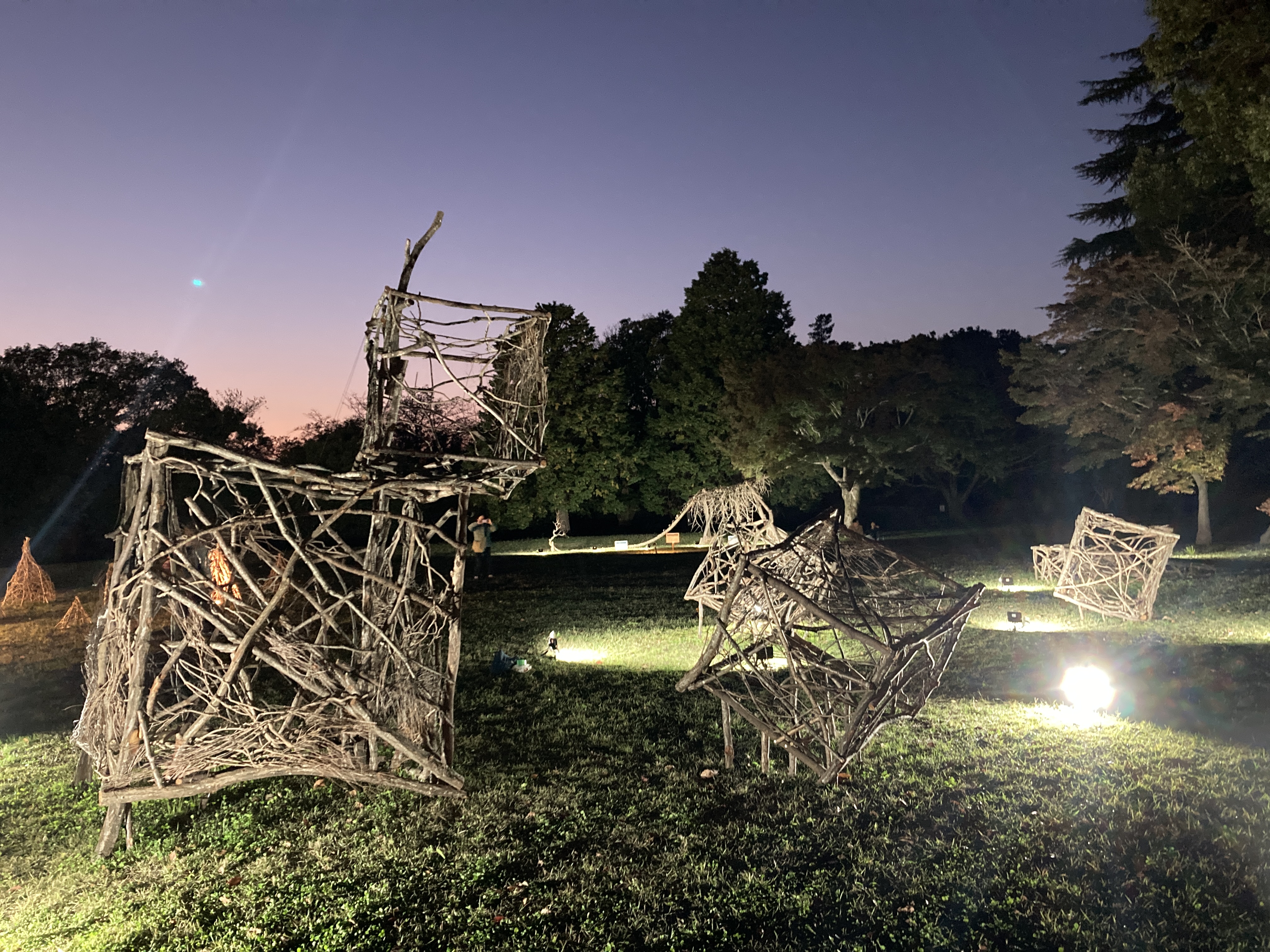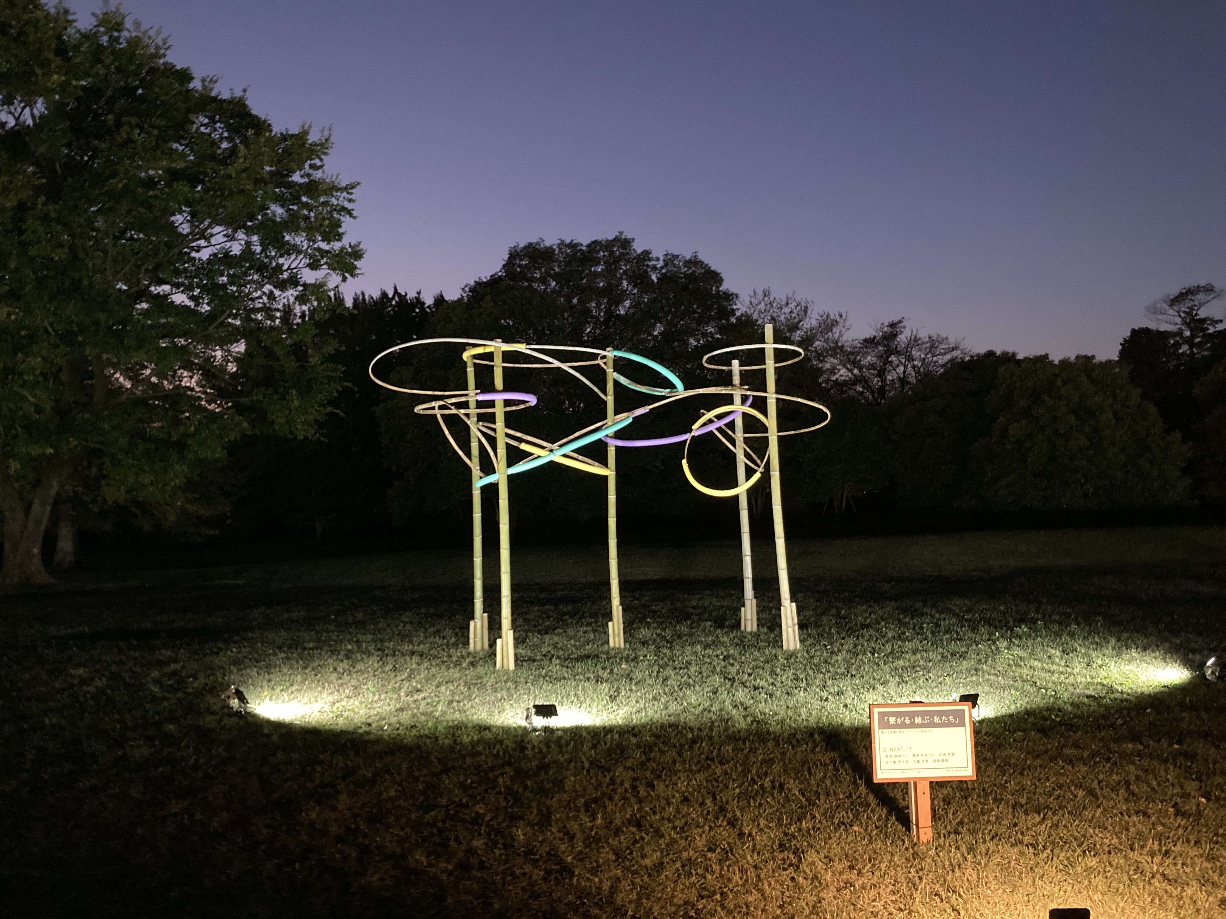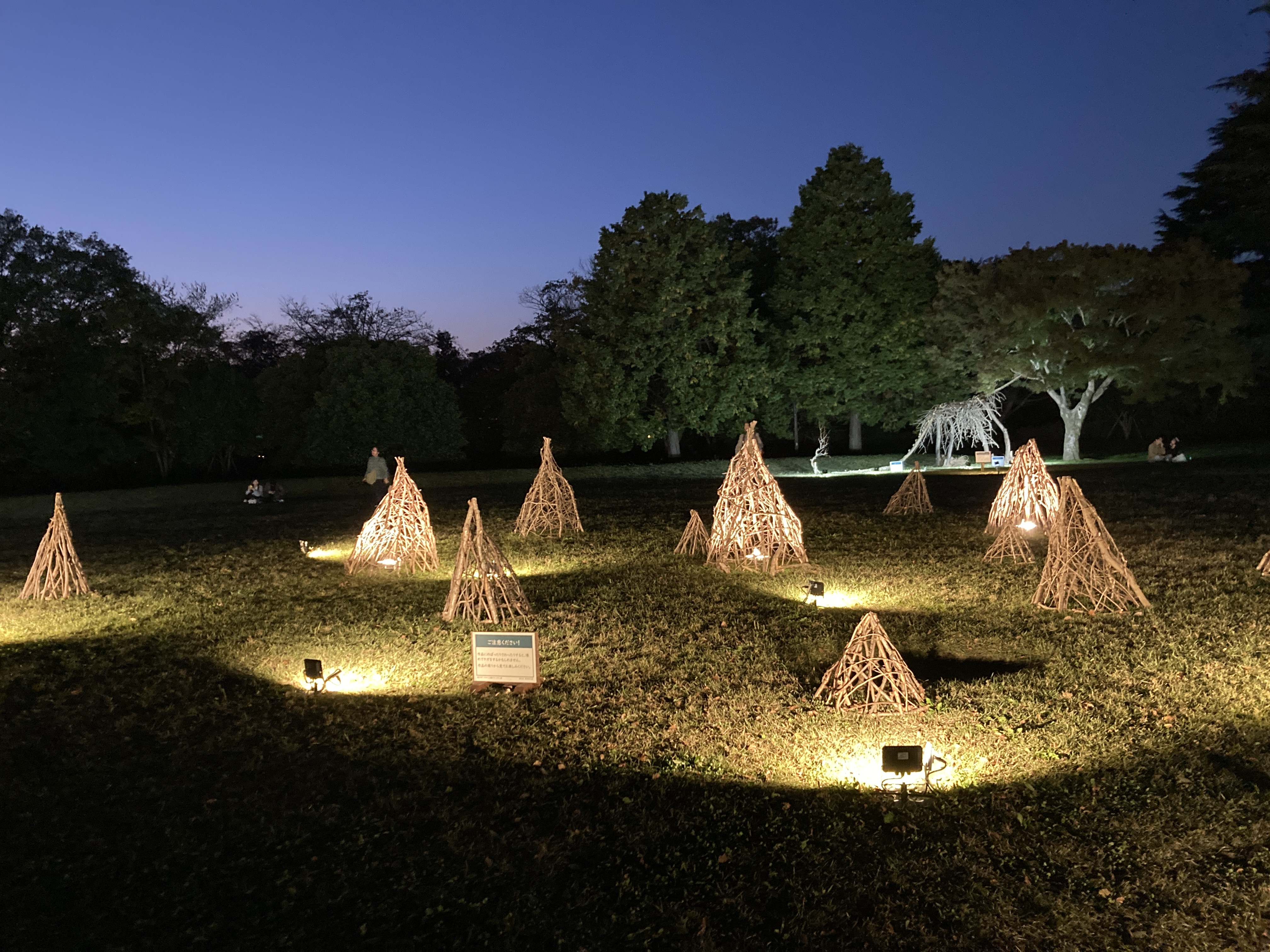 昭和記念公園内の剪定された樹木などを、いけばな草月流東京西支部の方々がアート作品に生まれ変わらせ、ライトアップで演出します。