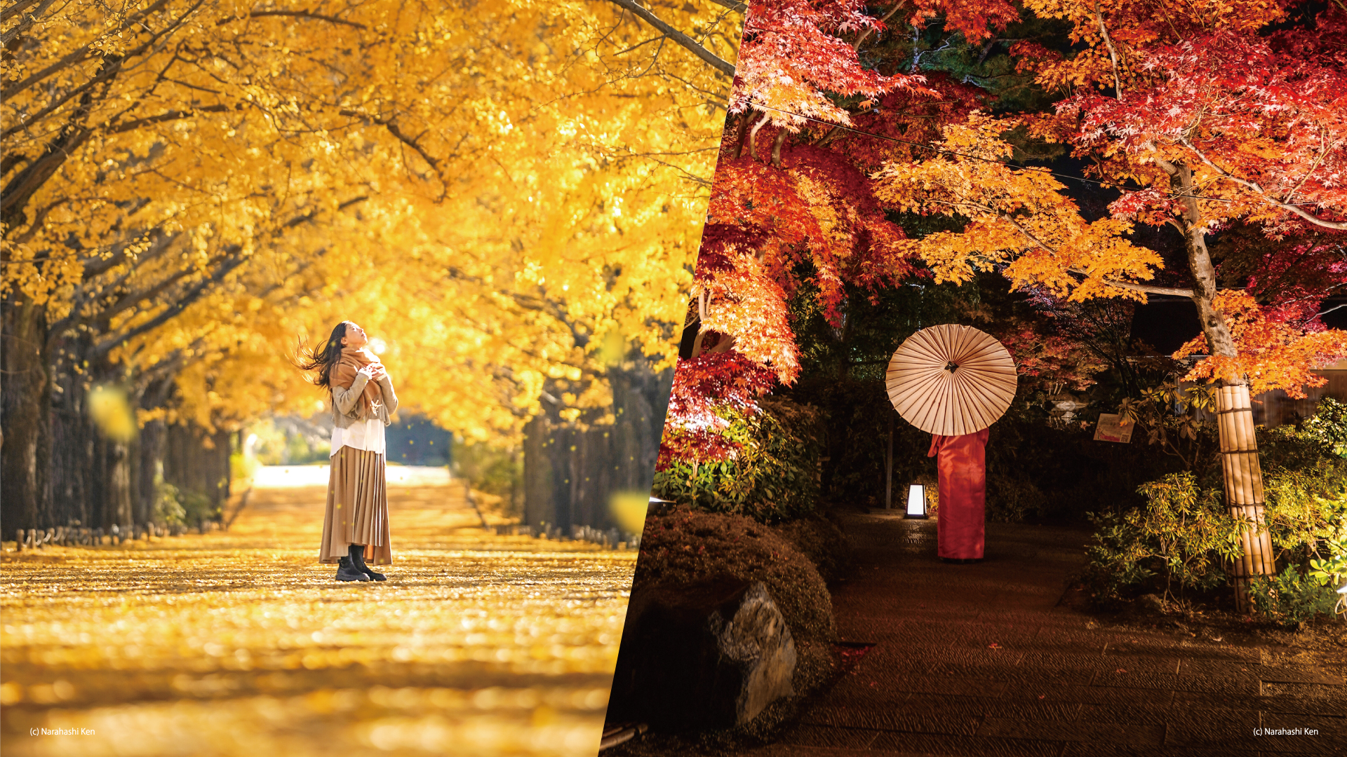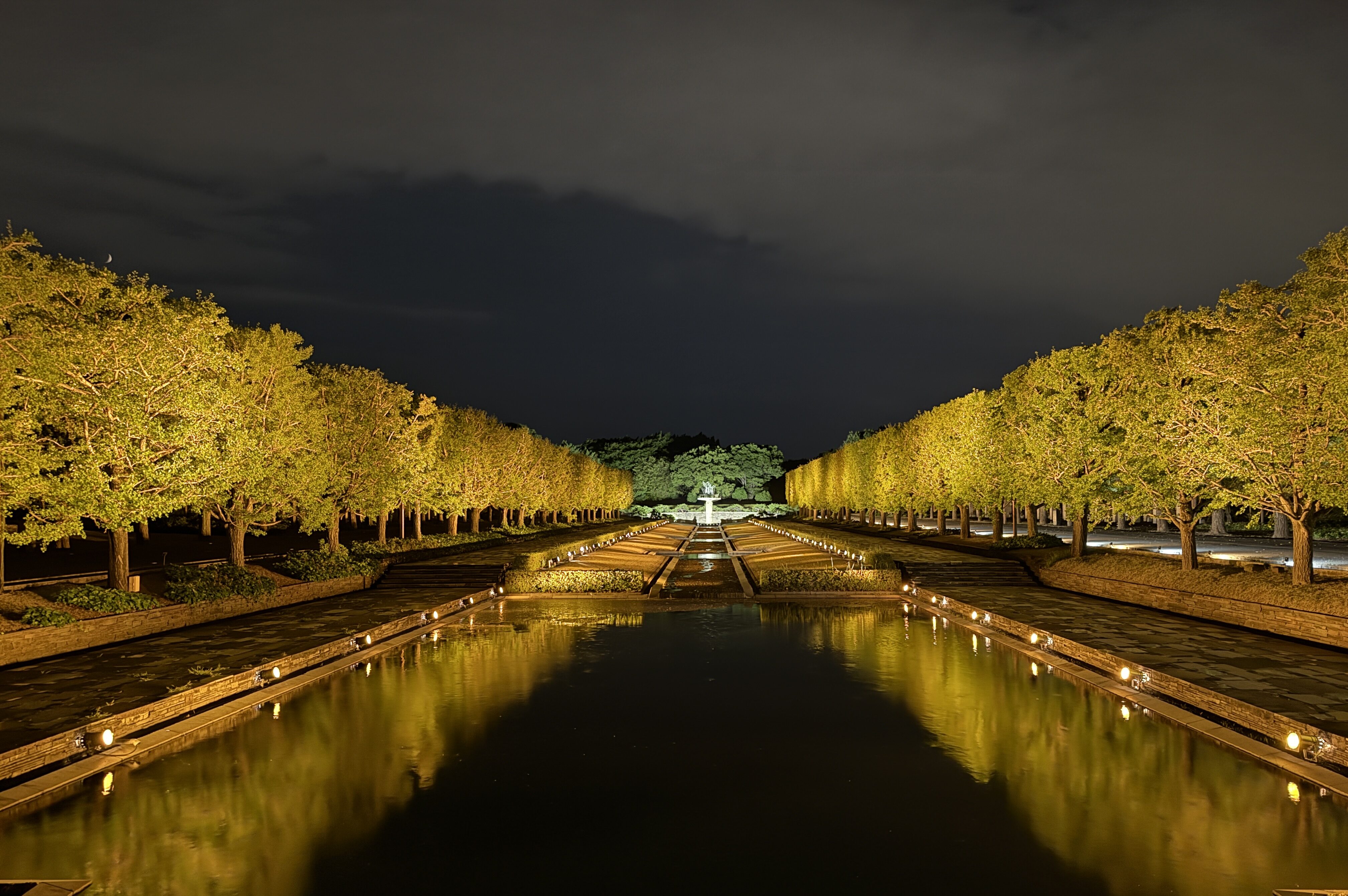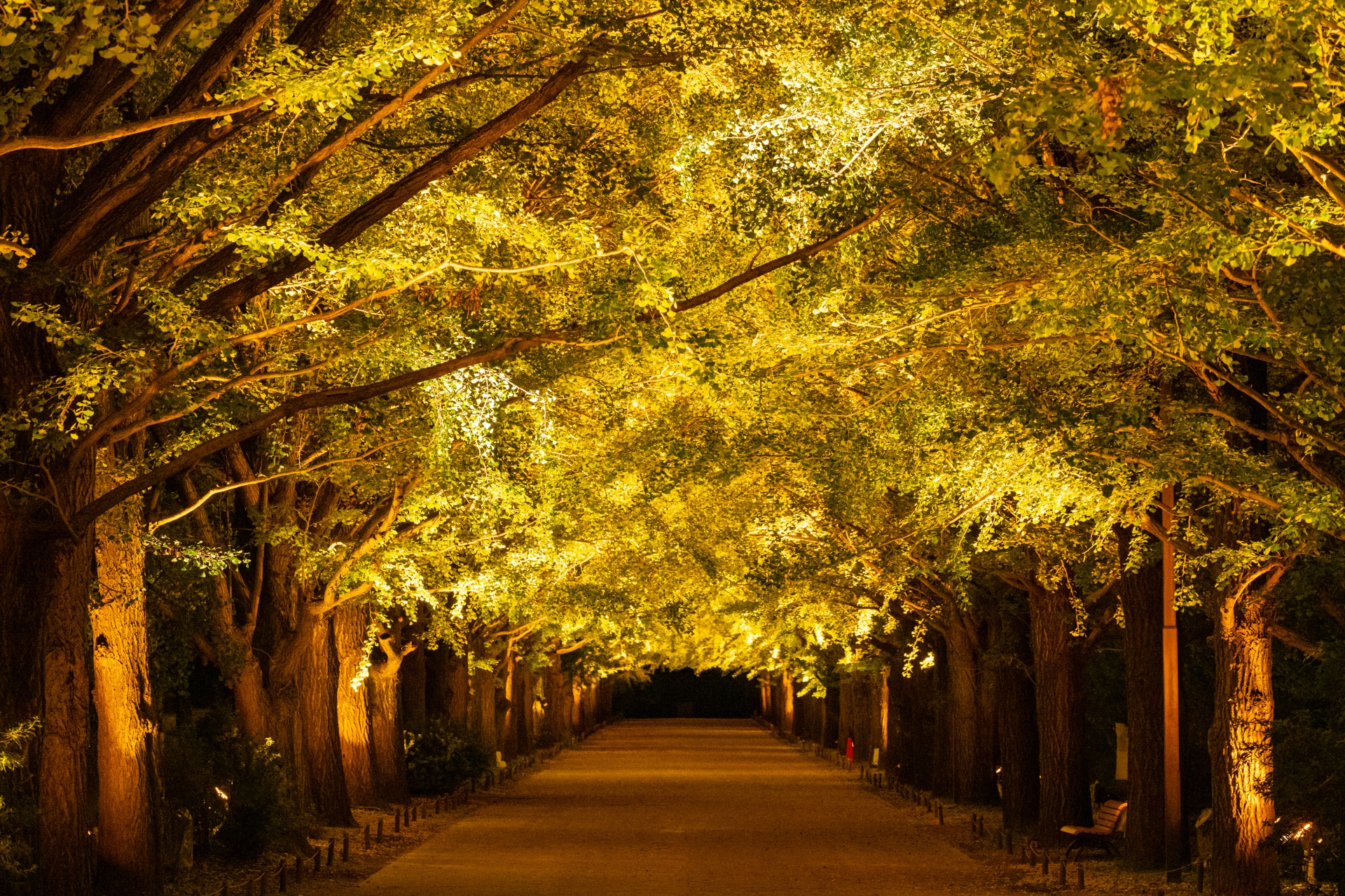 同じイチョウ並木でも、「かたらいのイチョウ並木」では“一本道の直線美”に“あたたかな黄色のライティング”、「カナール」では“整形された空間美”に“鮮やかな黄色&白色のライティング”など、異なる演出を行います。