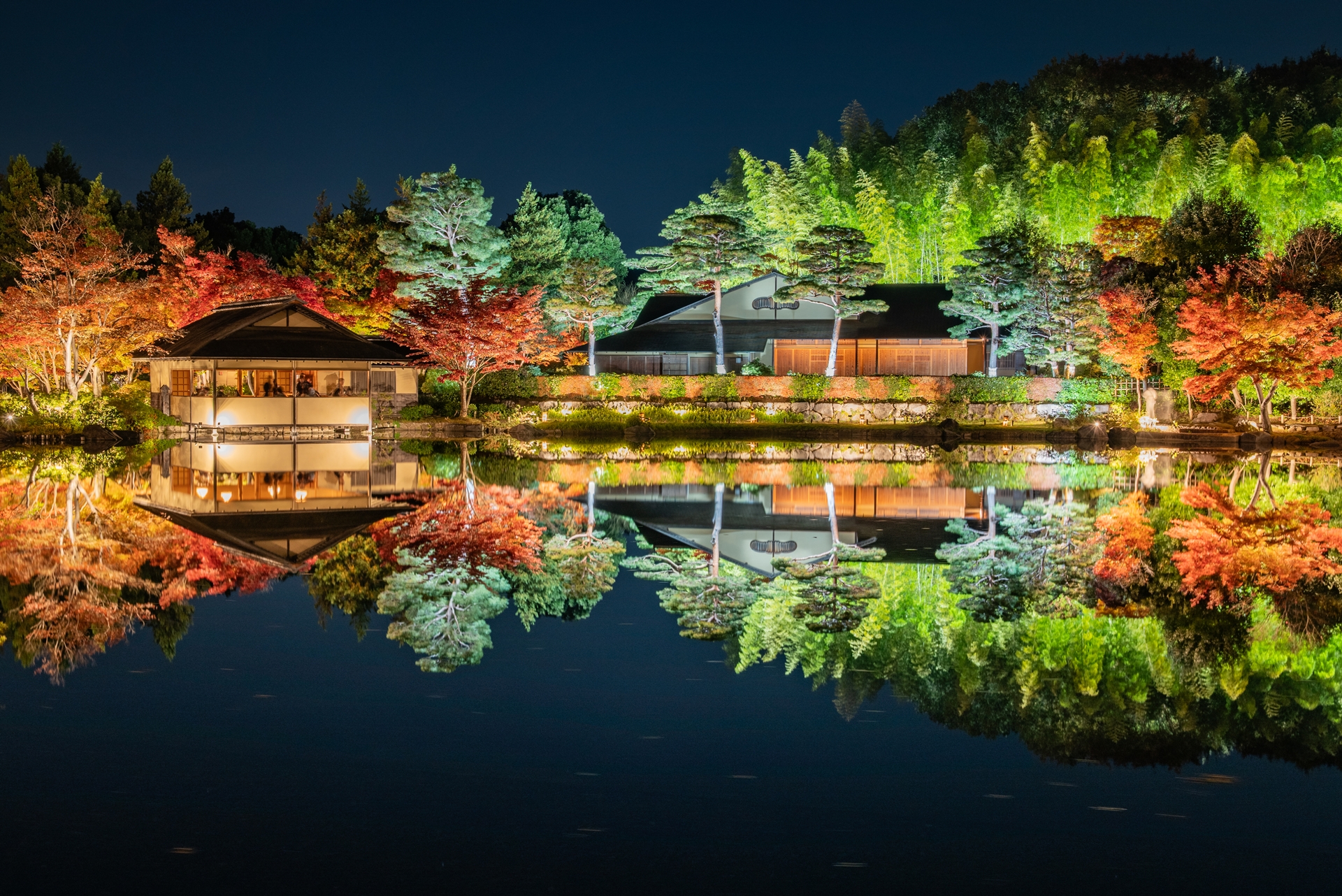 ライティングによって、色づき始めでも見事な黄金色に変化し、紅葉初期は昼・夜で全く違う景色をご覧いただけます。