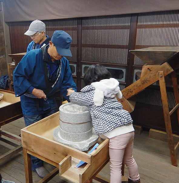 <粉ひき体験> 日時 11/22(土) 場所 こもれびの里(農家の外蔵) 参加方法 無料 雨天決行 ※こもれびの里で収穫した小麦を使い、石臼を手で回して小麦をひいてふるう体験。石臼の説明パネルで構造の説明もします!