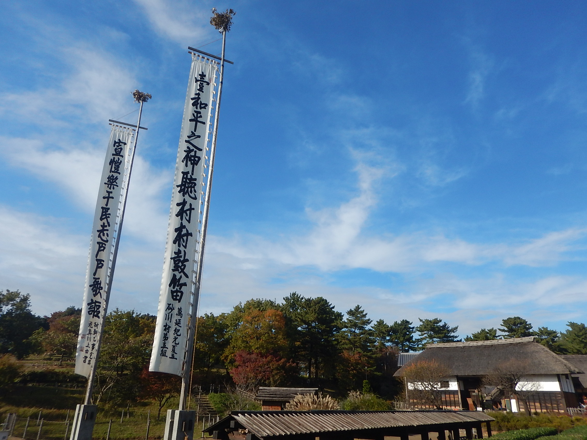 <大のぼり揚げ> 日時 11/21(金)~24(月・休) 場所 こもれびの里 自由見学 雨天・強風時中止 ※高さ16mの竿に、「大のぼり」を揚げます