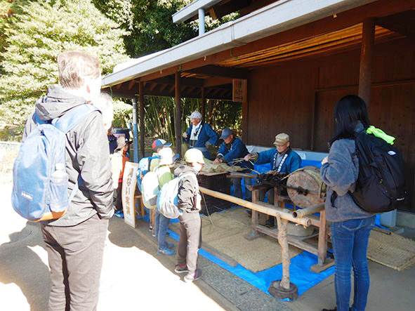<縄ない実演> 日時 11/22(土) 場所 こもれびの里(里の小屋下屋) 自由見学 雨天決行 ※昔の道具の「縄ない機」で縄を作ります。手でも「縄ない」をします。