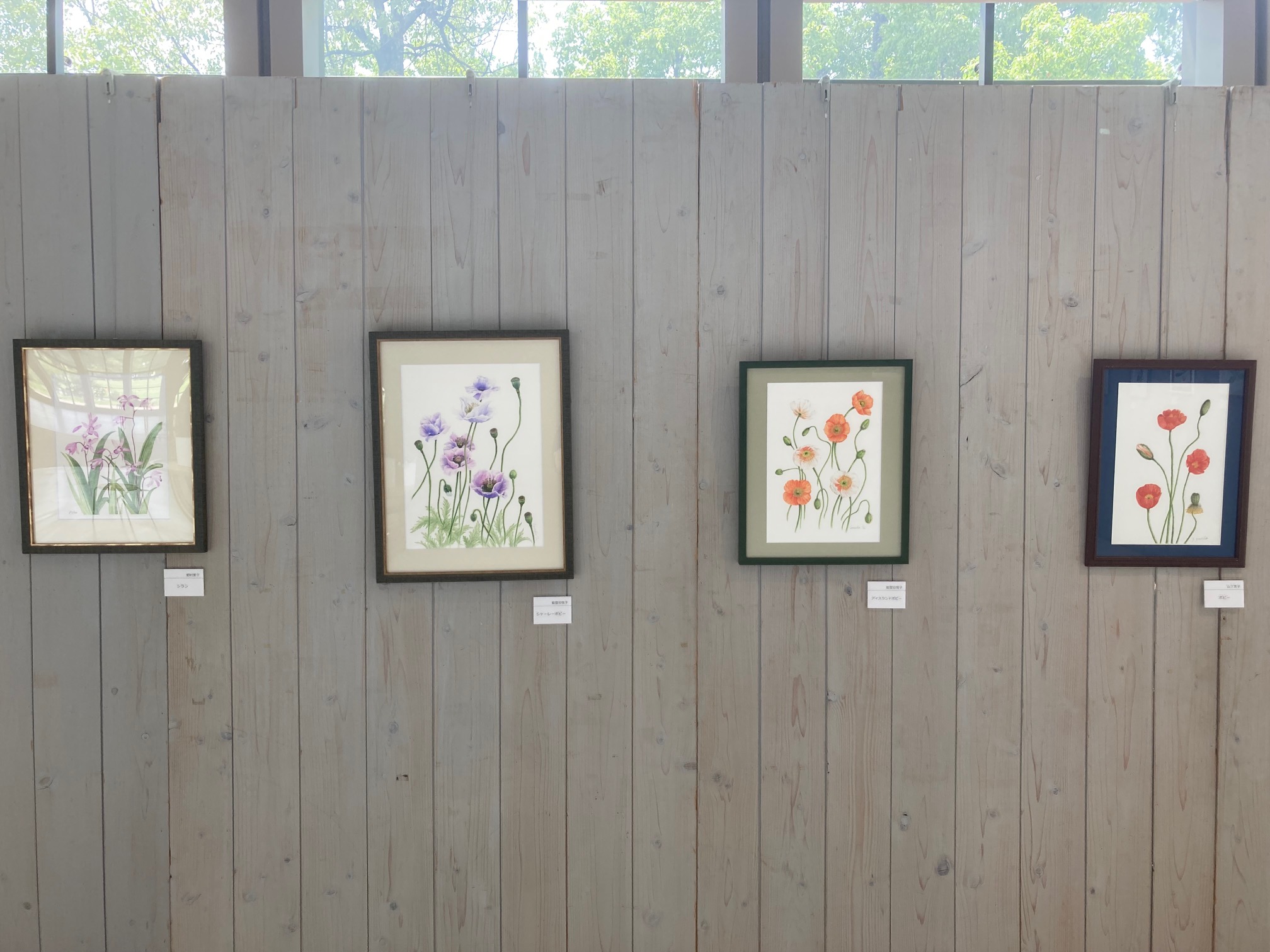 - 緑を愛された昭和天皇が御製(天皇の作る詩文や和歌)に詠まれた四季の植物を、花文の年間講座ボタニカルアート教室の生徒さん達に描いていただき、記念館とのコラボレーションとして展示