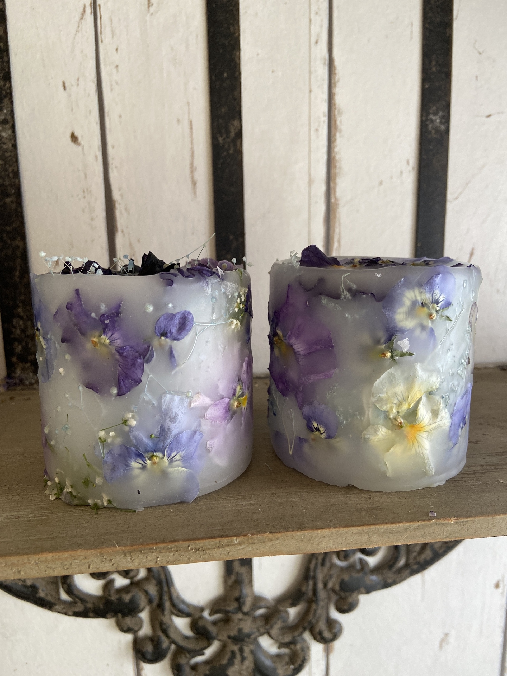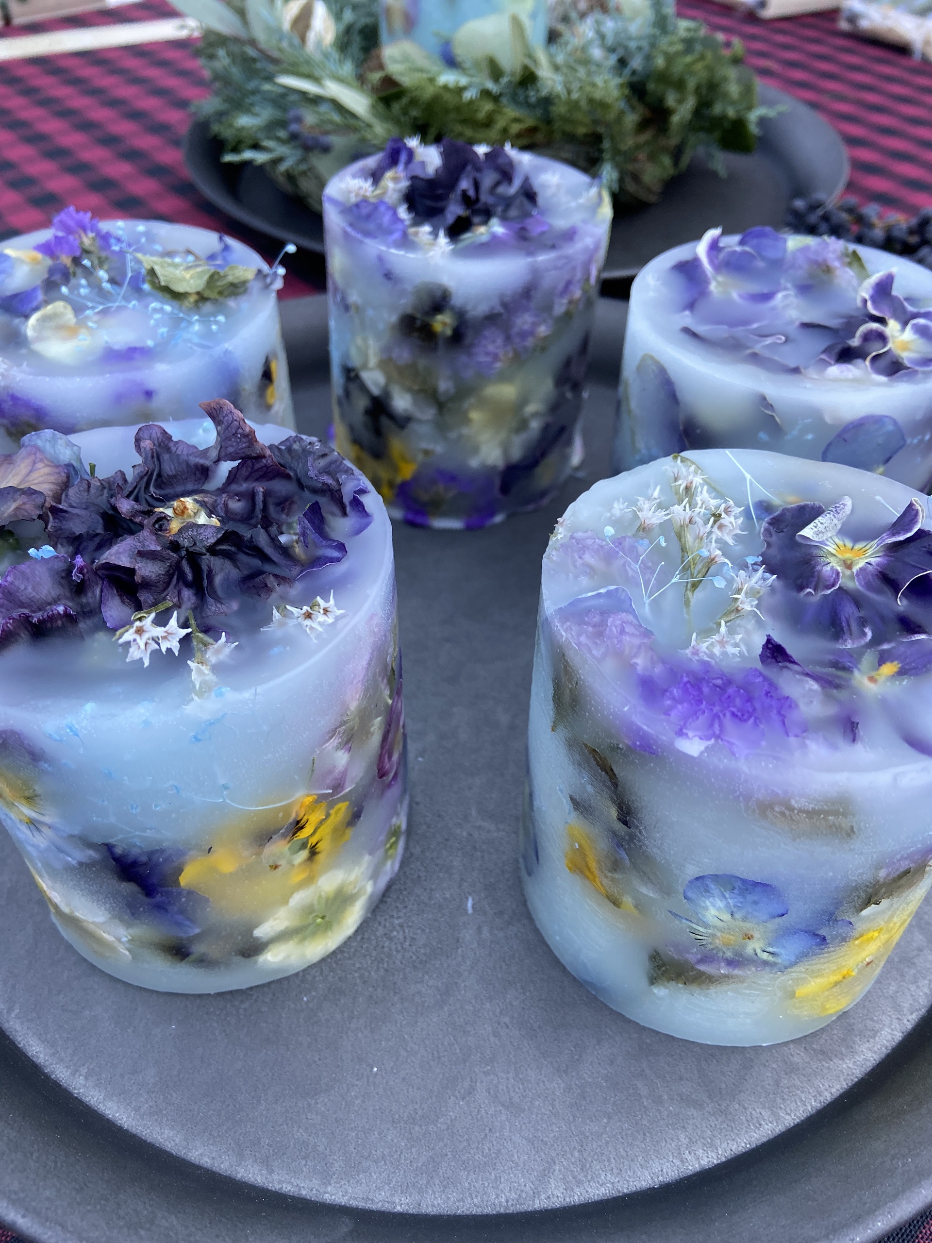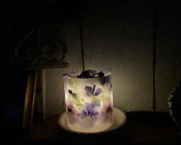 育種系ビオラやストックなどのお花をドライフラワーにしてランタン状のキャンドルを作ります。夜はLEDの熱くならないライトを灯し、幻想的な雰囲気の中でお花を楽しみます。
