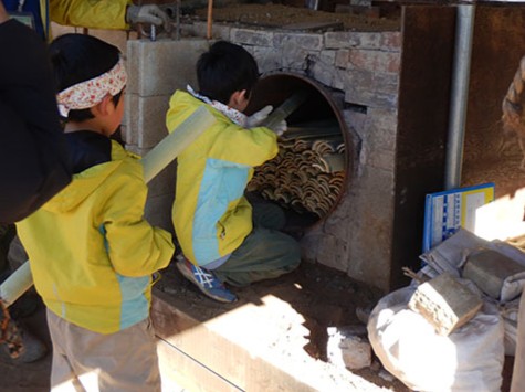 こもれびの里の炭焼き小屋で、竹炭ができるまでの工程を体験します。