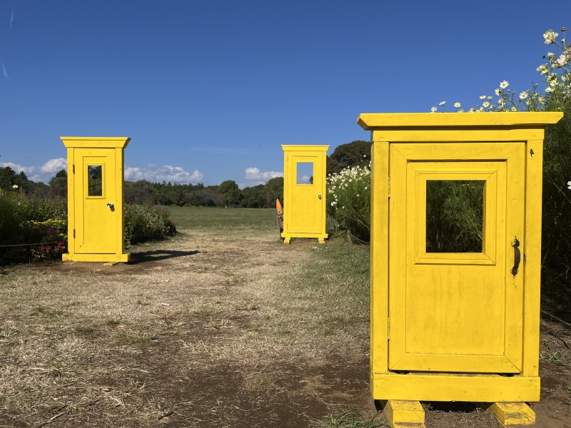 二つの黄色いドアが並びます。