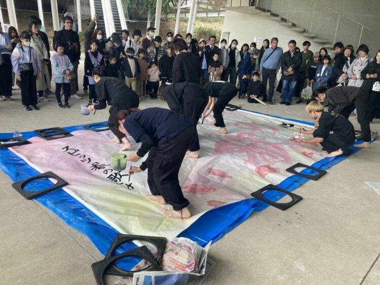 “桜に関する歌” の歌詞を、筆で力強く書いていく圧巻パフォーマンス!!