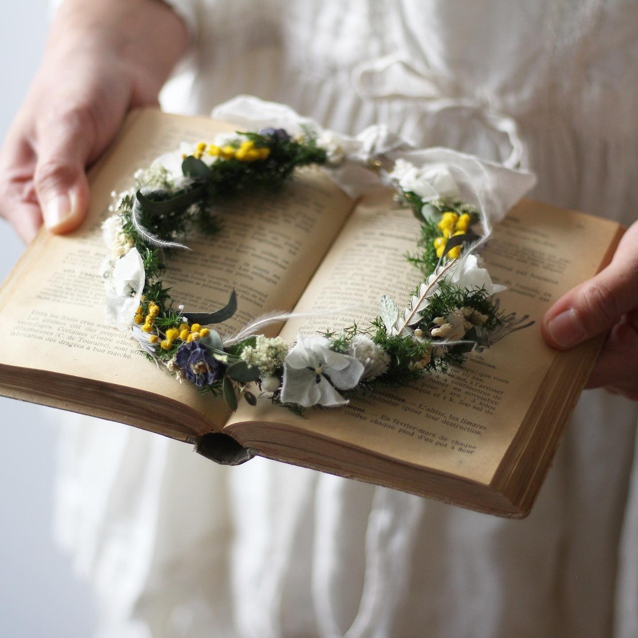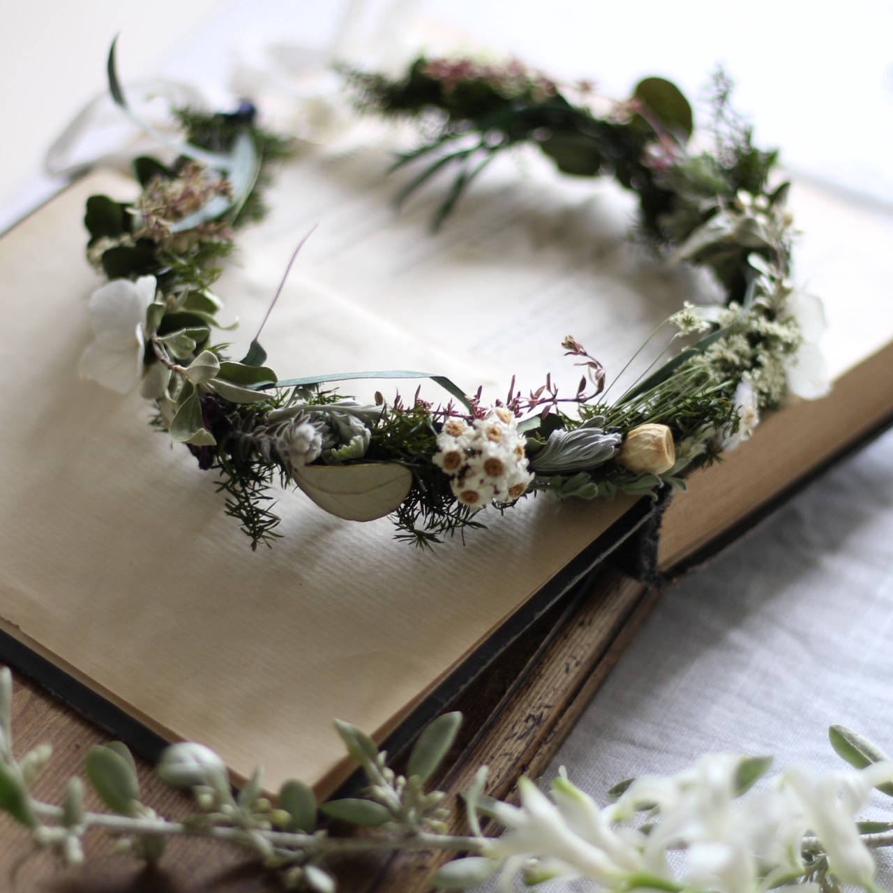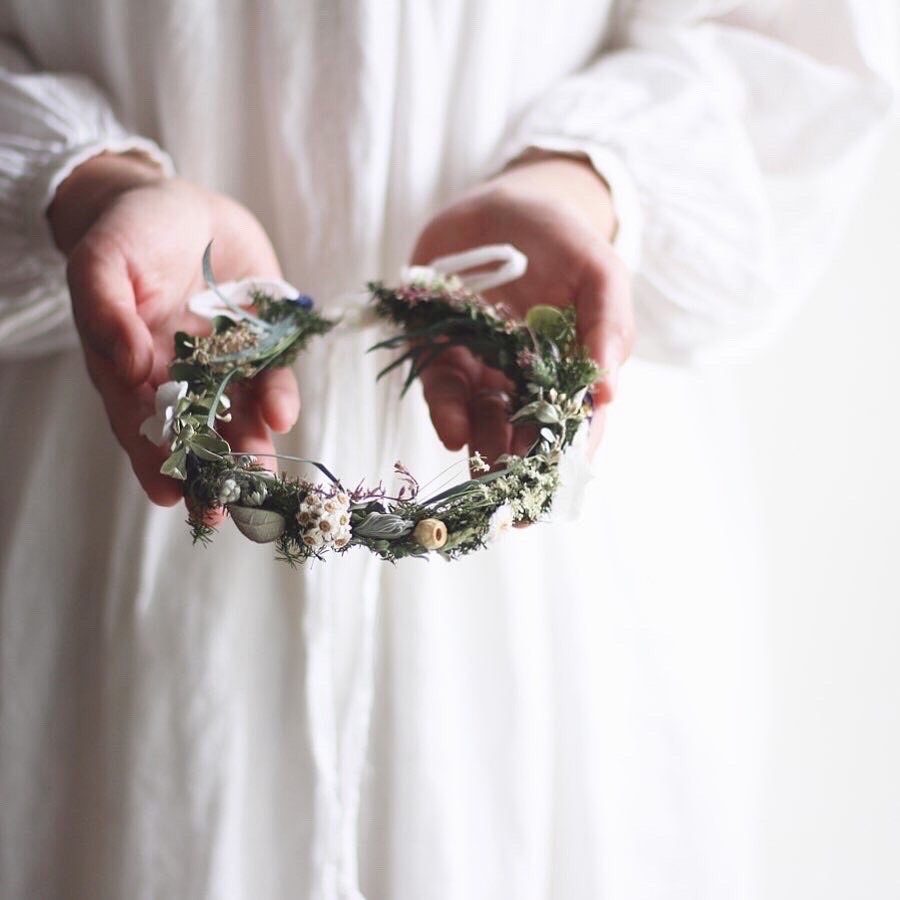 花冠はかぶるのはもちろん、リースのように壁に飾っても楽しんでいただけます。