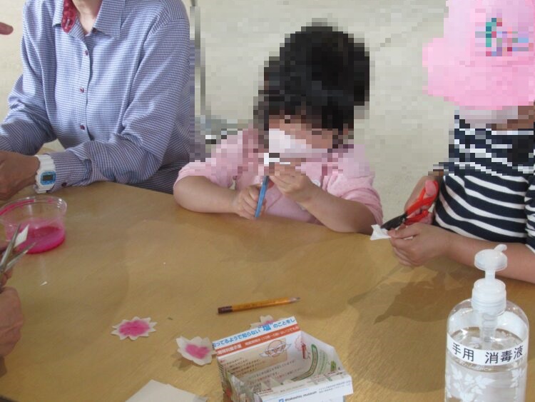 ~和紙で桜の花を作って、絵具でピンクに染めてみよう!~