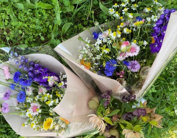 季節のお花やハーブを使い、束ねてブーケを作ります。