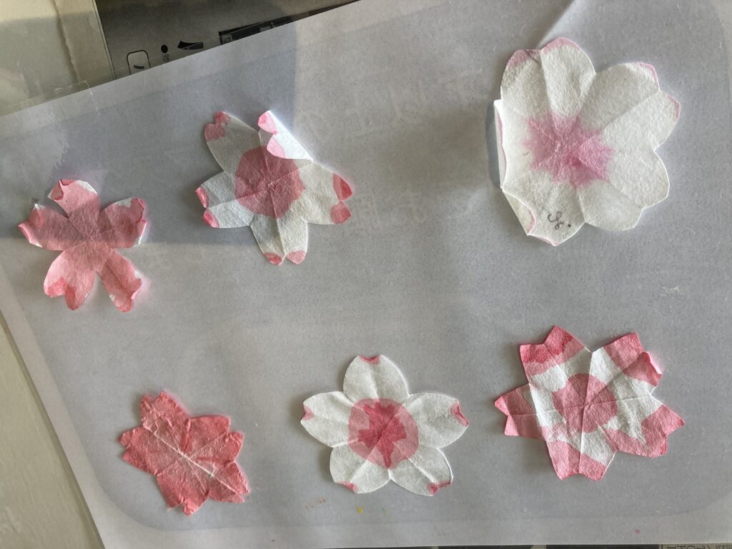 ~和紙や折り紙で桜の花びらを作って、絵具でピンクに染めてみよう!~