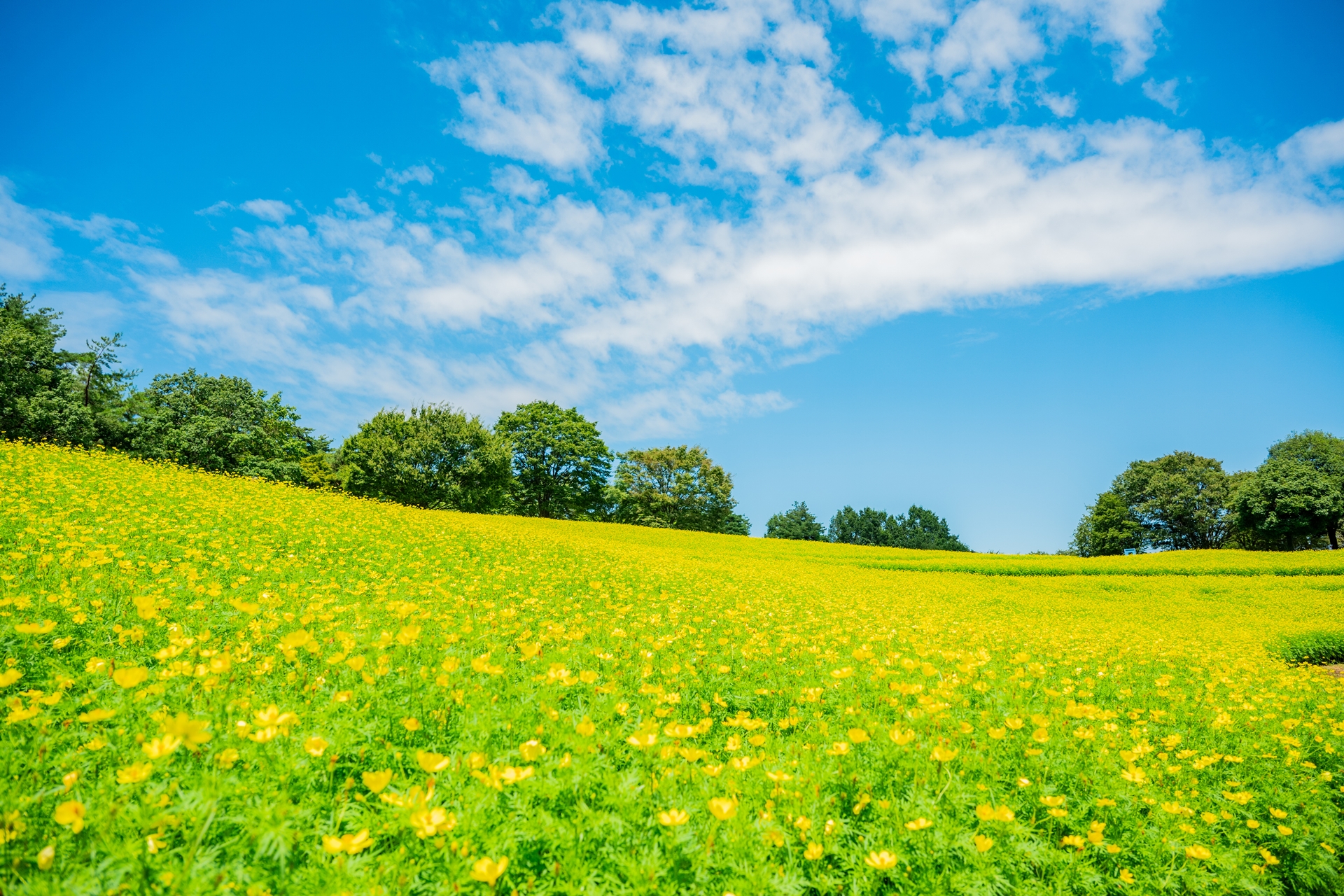 オープンは平成23(2011)年で、昭和記念公園のなかでも新しいエリアですが、春にはポピー、秋にはコスモスが大パノラマで咲き、花のシーズンには欠かせない存在となりました。丘の上からは立川駅方面が一望できます。 花の種類は、年や季節によって変化します。花・植物のページをご確認ください。