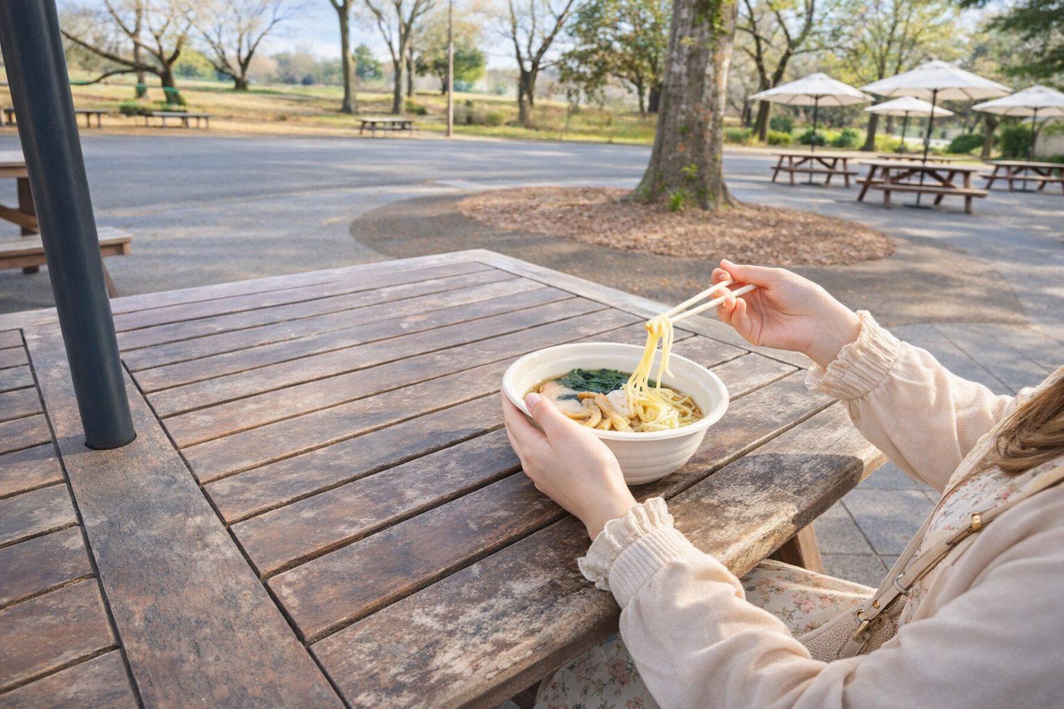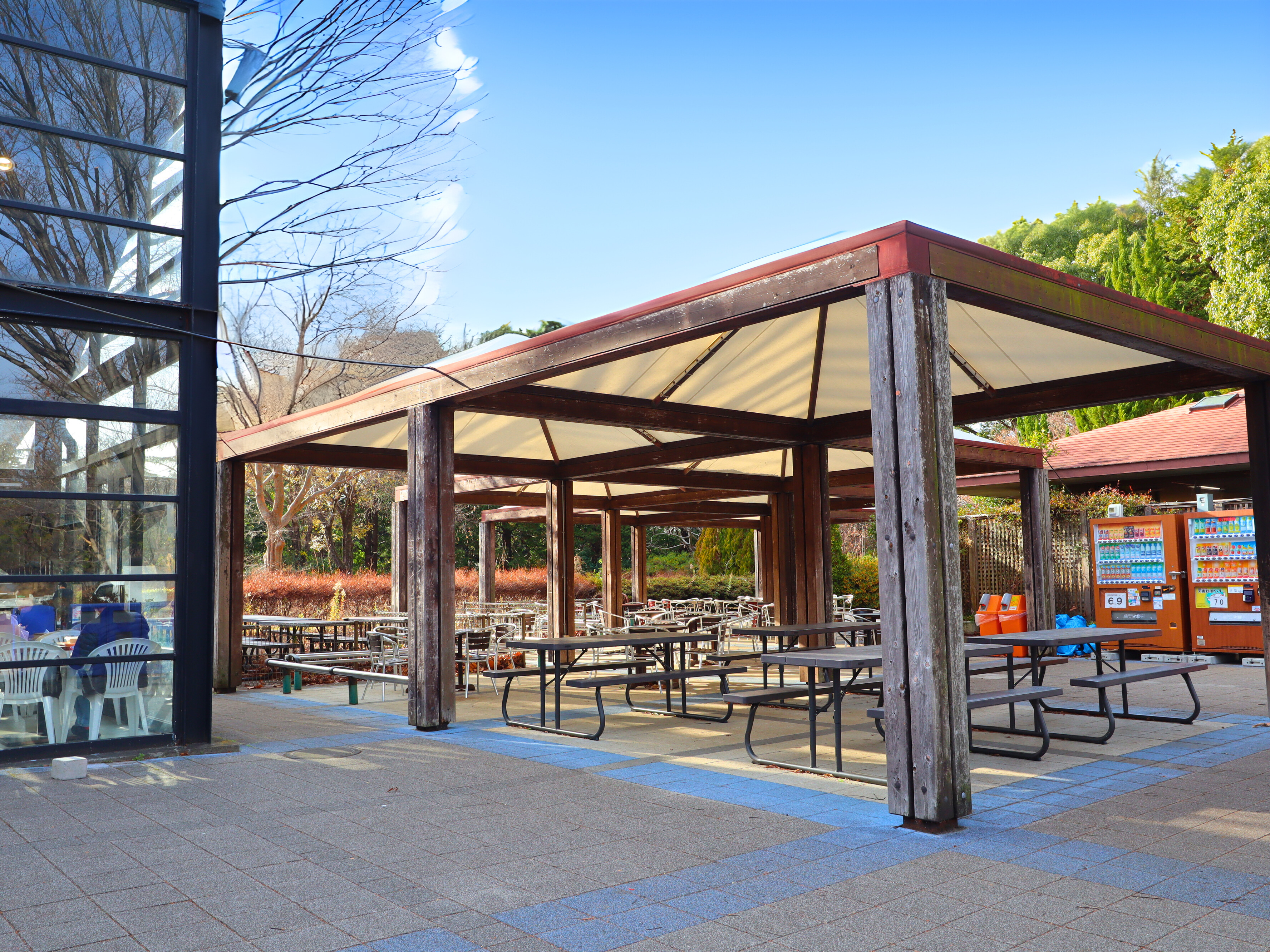 渓流広場レストランは、みんなの原っぱとうんどう広場の間に位置しています。