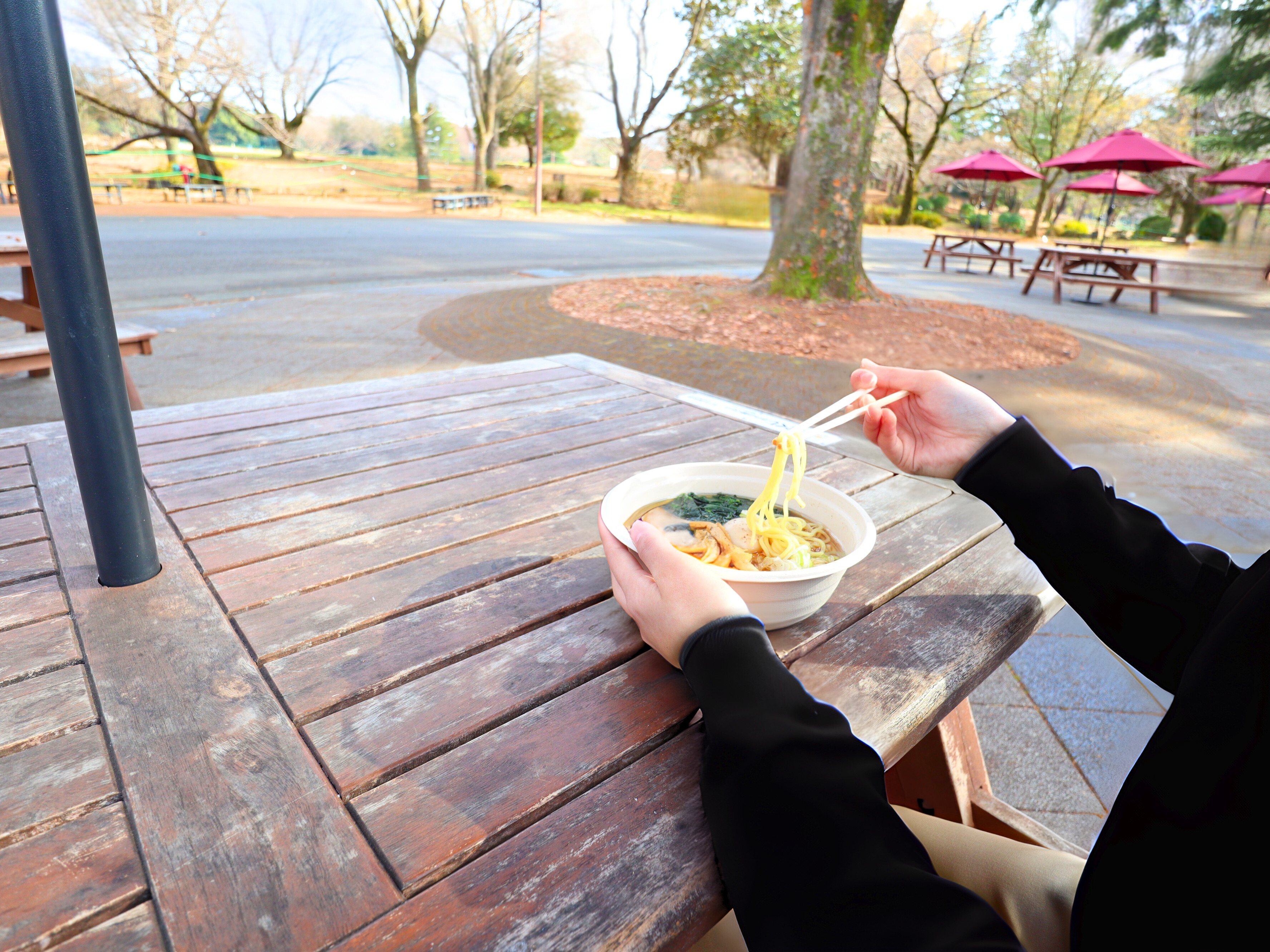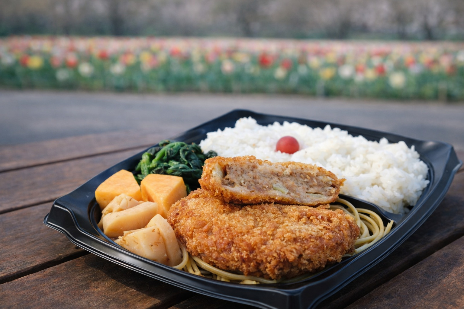 メニューはテイクアウトの軽食が中心。自然の中でごゆっくりお召し上がりください。