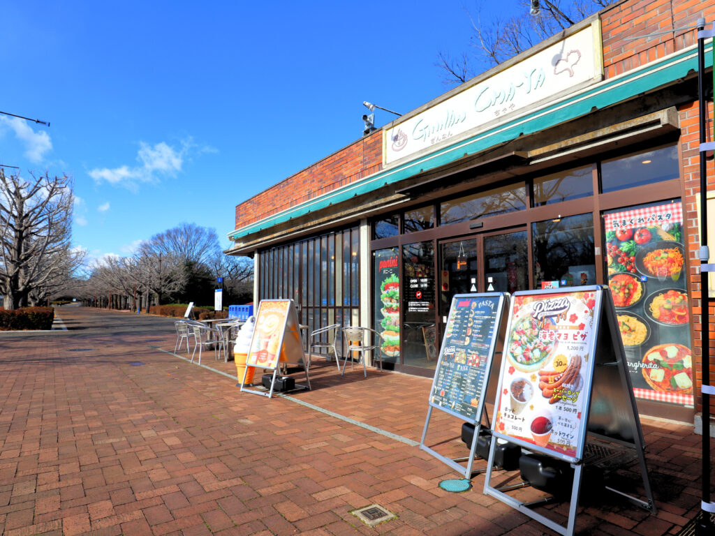 立川口ゲートを入ると、真っ先に目に飛び込んでくるのは、このカナールです。カナールは造園用語で「修景手法のひとつで細長い直線水路」を意味しています。全長200mの水路には大小5つの噴水があり、その両側には合計106本のイチョウが左右対称に2列ずつ植栽されています。 このイチョウは基地時代に植栽されたものを移植したもので、開園からの年月を経て見事な緑の回廊へと成長を遂げました。 秋には黄葉が美しく、昭和記念公園の二大黄葉スポットの一つとなっています。