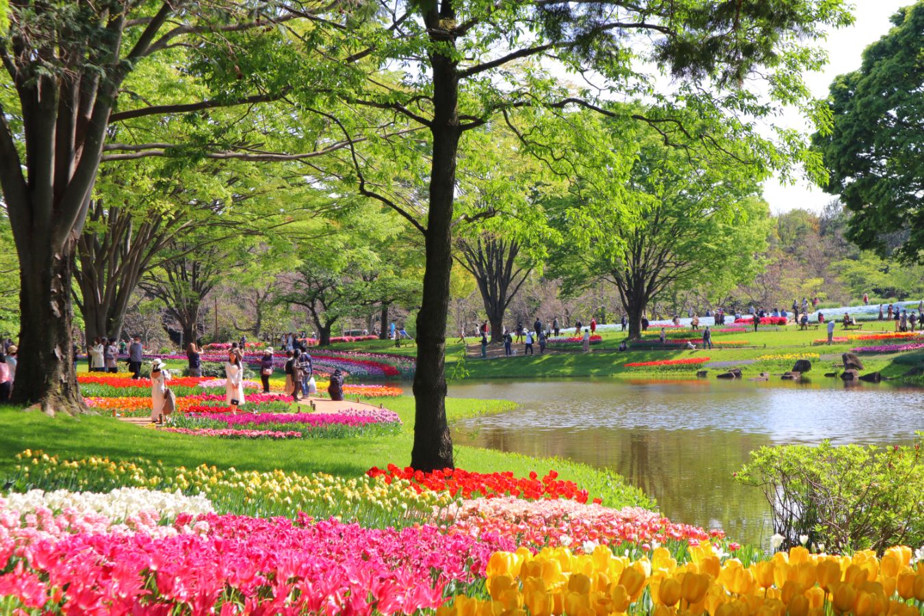 春の公園を代表するチューリップガーデンは、オランダのキューケンホフ公園の元園長を招き、その美しいオリジナルデザインを踏襲したものです。