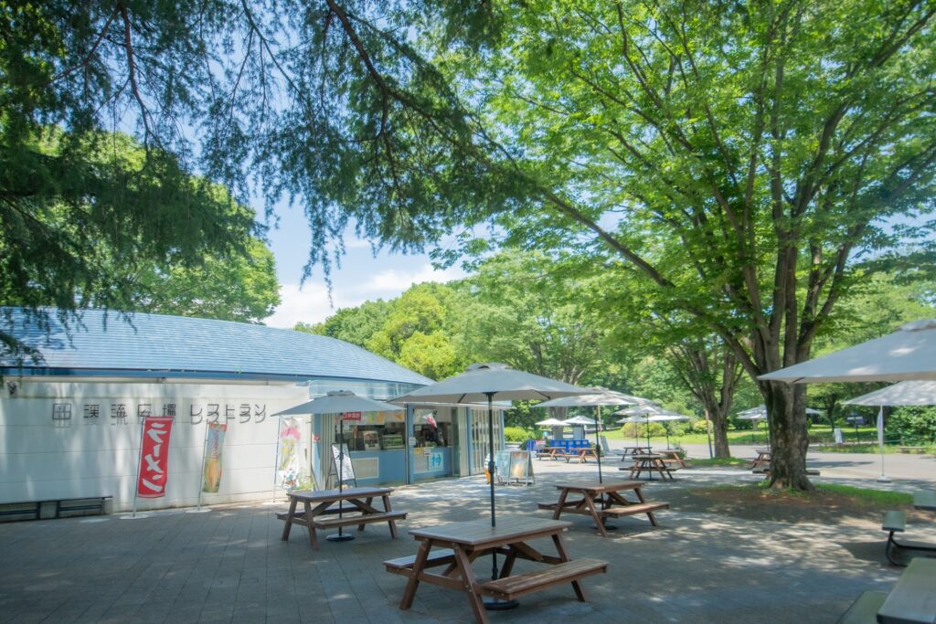 園内の真ん中にあるみんなの原っぱは、南北約400m、東西約300m、約11haの広大な原っぱです。中央にはシンボルツリー、高さ20m以上の大ケヤキがあります。スポーツをしたり、木陰で一日のんびりしたり、過ごし方はいろいろ。