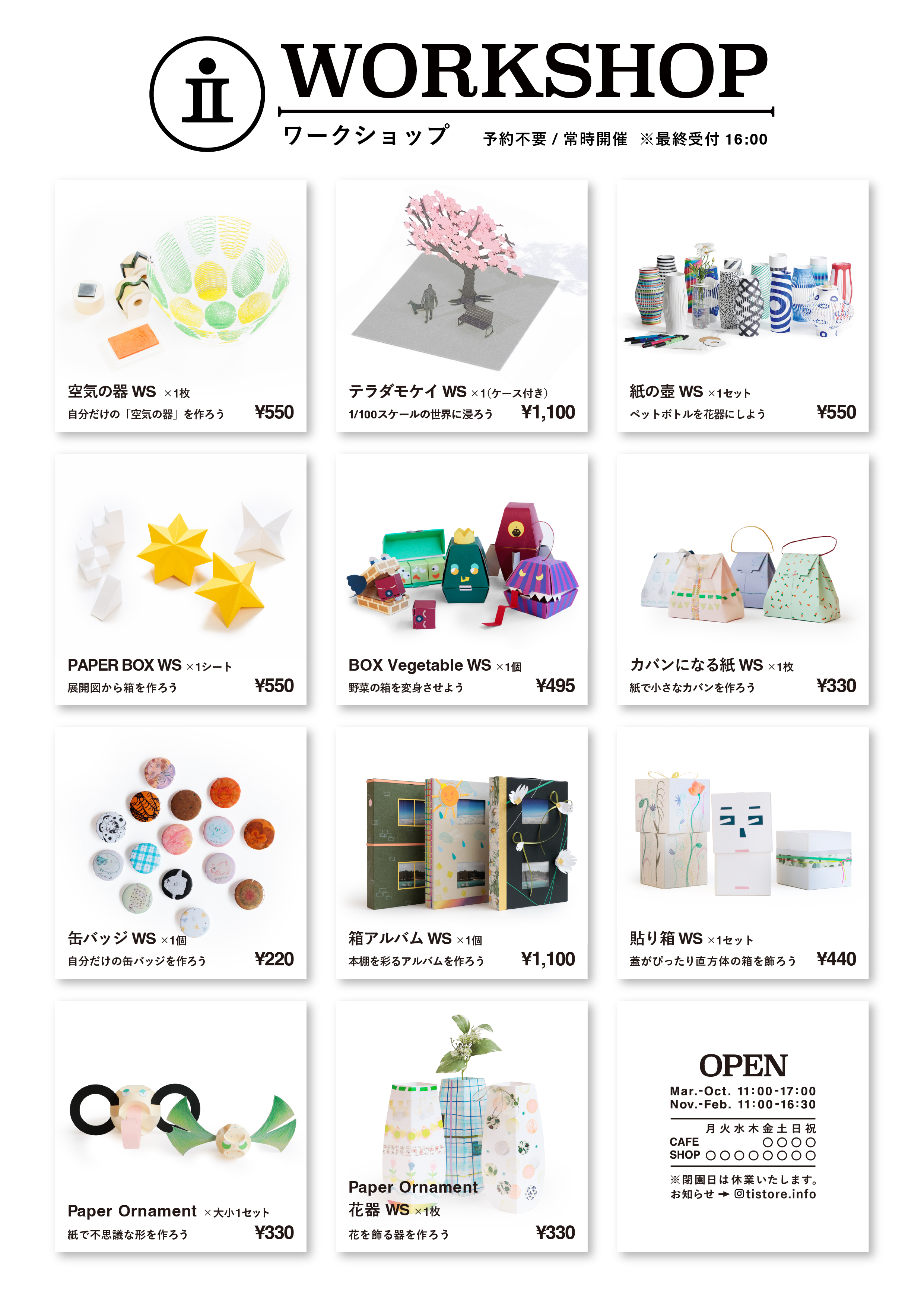 | ショップスペース | 営業時間 11:00~17:00(11月~2月は16:30まで) |