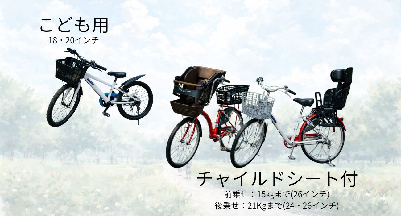 - 自転車に鍵が付いています。駐輪場に停車の際は鍵をかけていただき、紛失しないようにご注意下さい。