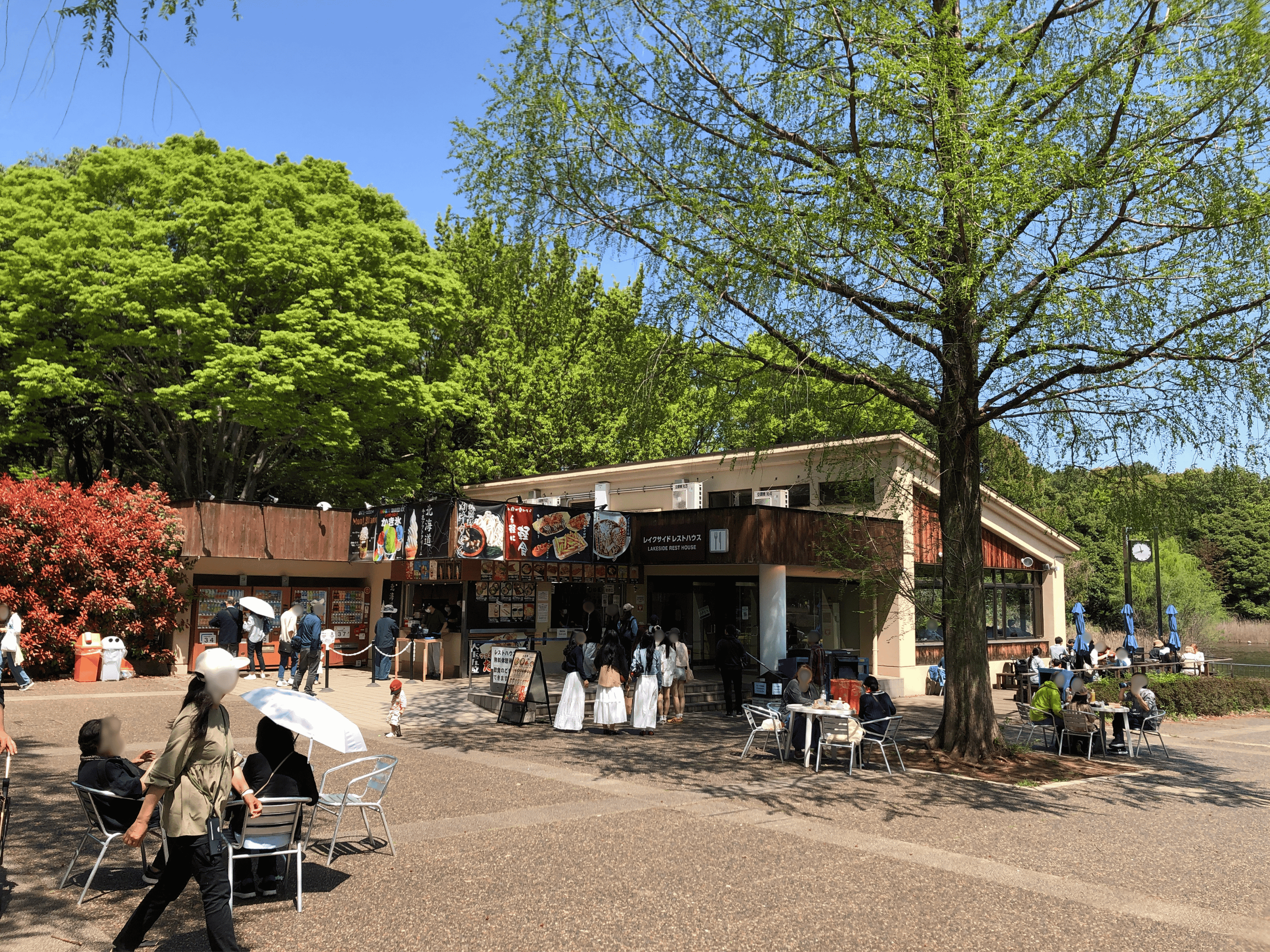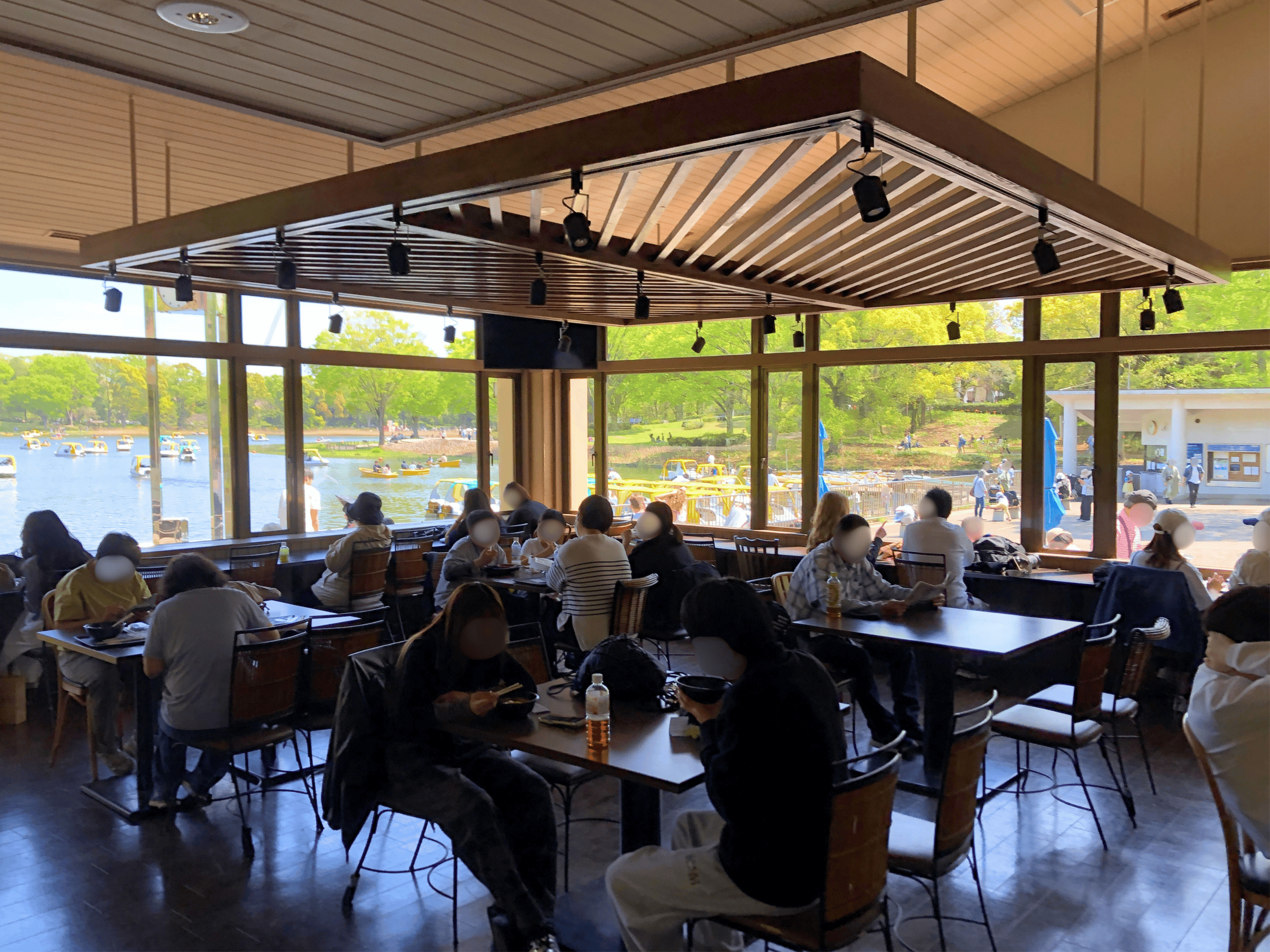 飲食のお持ち込みが可能な屋内休憩所です。水鳥の池に面していますので、四季の風景を眺めながらのんびり休憩していただけます。ボートに乗っているご家族を待つのにも便利です。