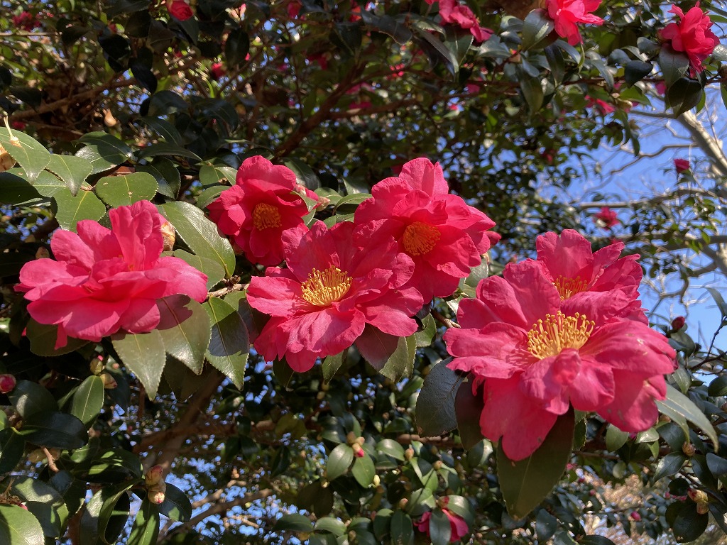 公園内が少し寂しくなる冬から早春にかけては、澄んだ青空に映える鮮やかな花木や、寒さのなか足元で健気に咲く花たちに出会えます。