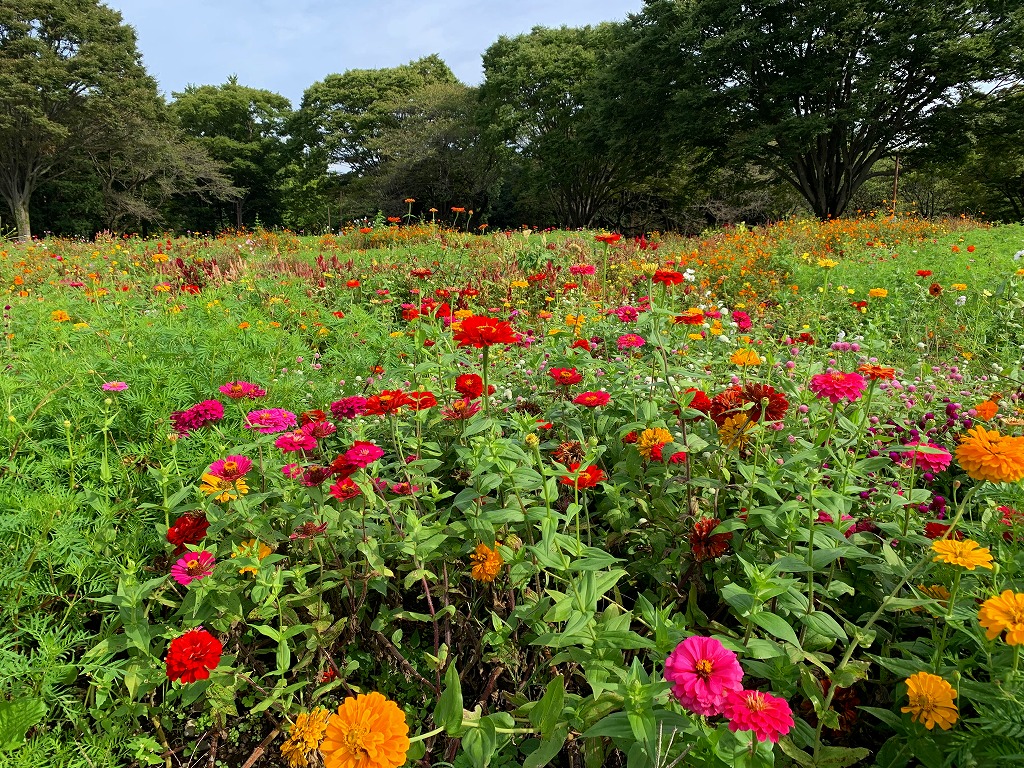 - 原っぱ西花畑 「センセーション」 「秋咲き大輪」 「ドワーフセンセーション」をミックスした花畑