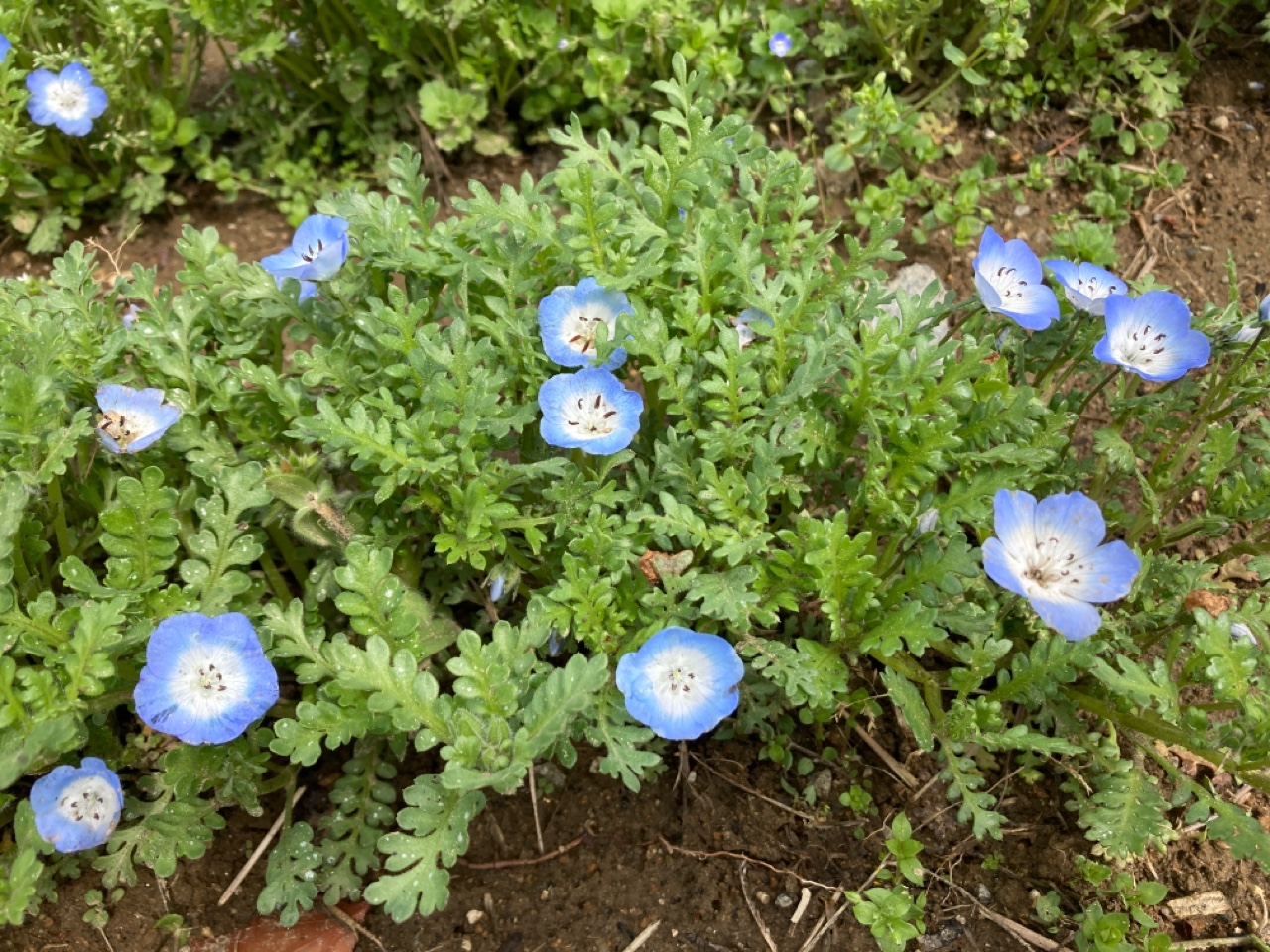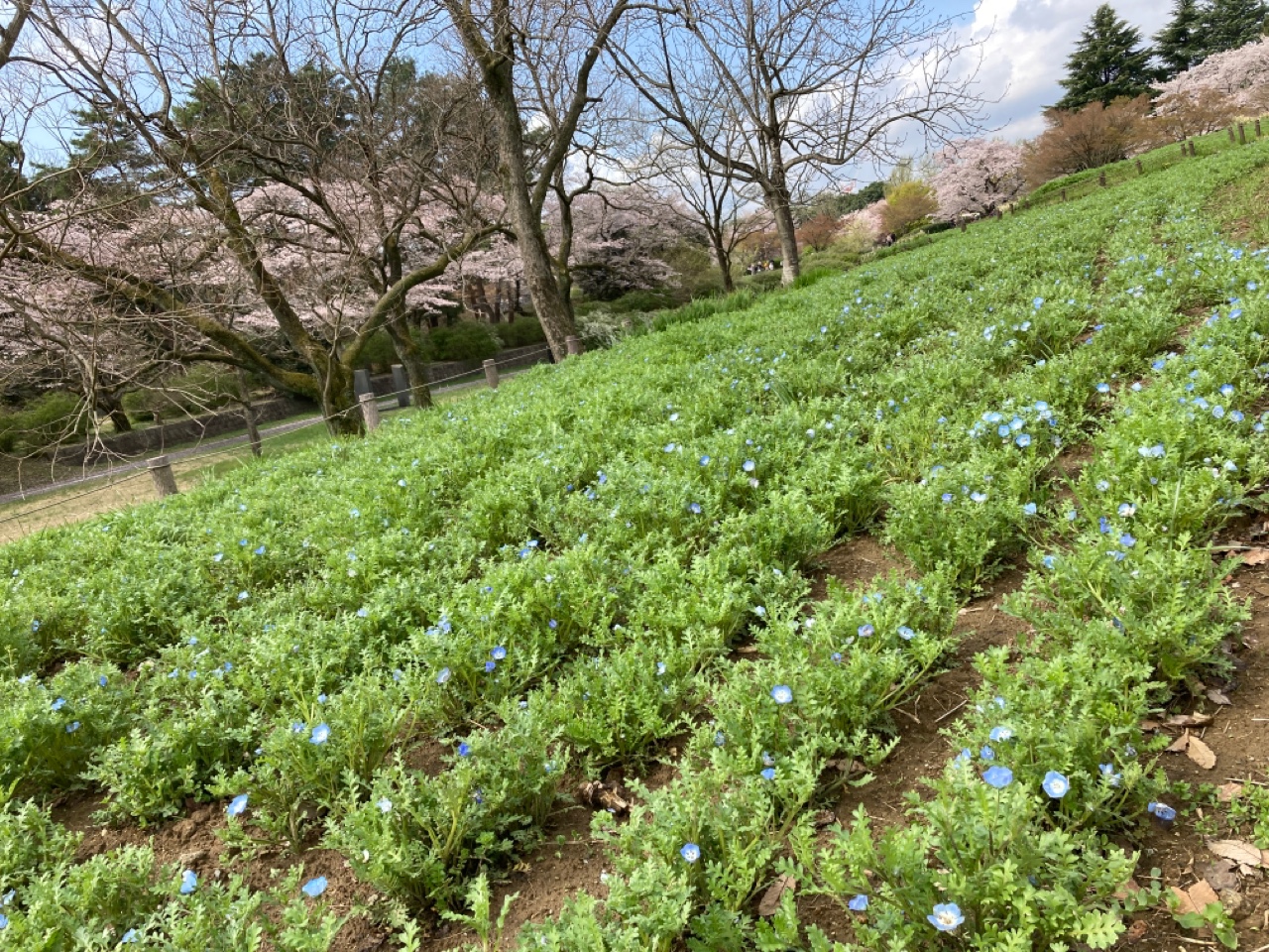 ハーブの丘に咲くネモフィラの花畑の様子です。