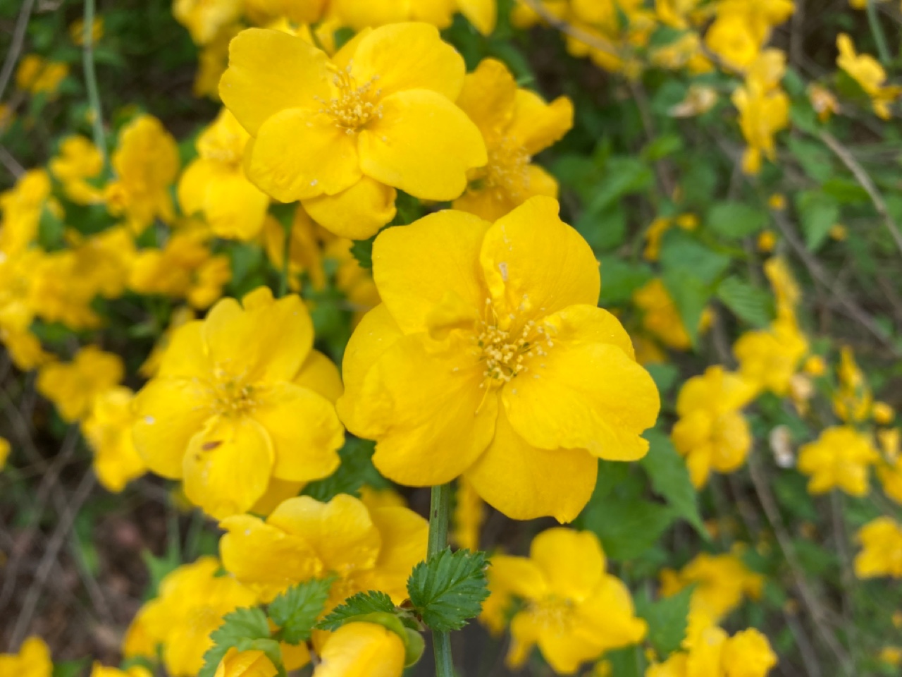「山吹色」という色名が付くほど鮮やかな花を咲かせます。