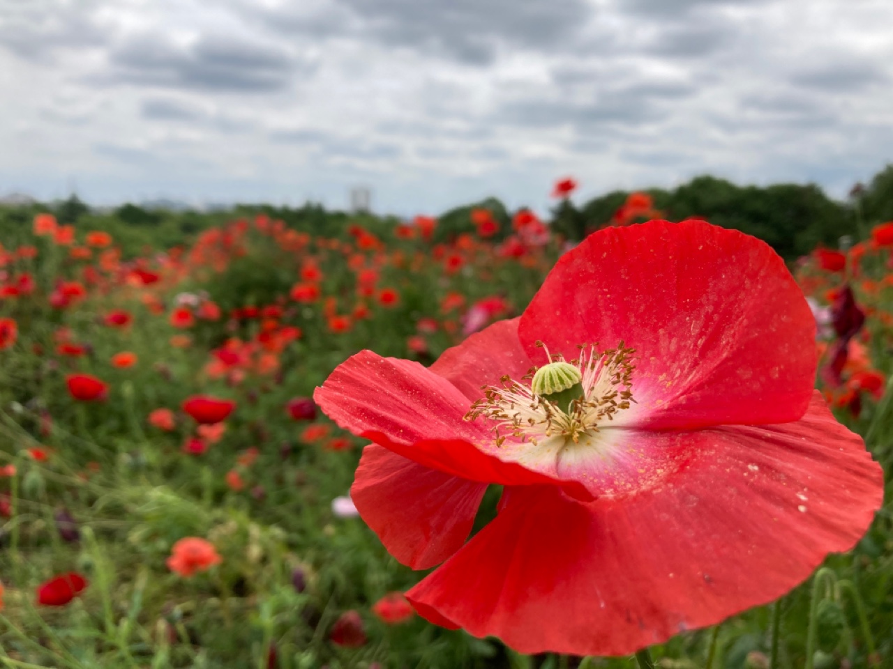 どこを見てもブーケのようなのでブーケガーデンです。ポピー、ヤグルマギク、カモミール、アグロステンマなどの様々な花が咲いています。