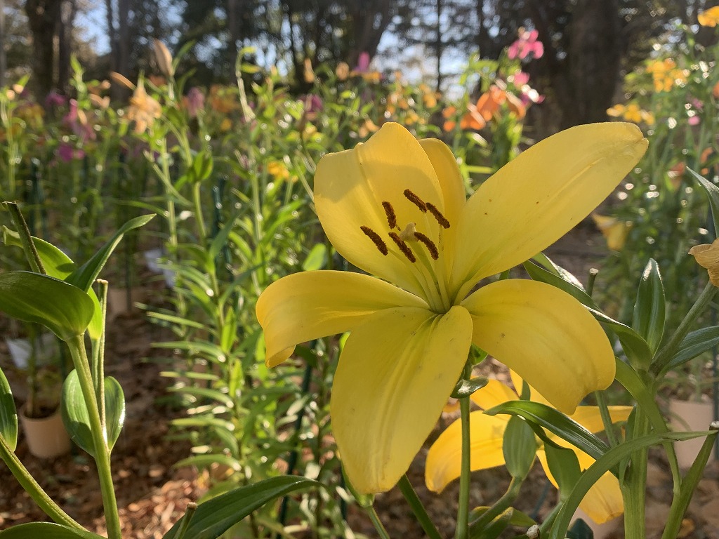 本来は初夏に咲くスカシユリを冬に咲くよう調整した品種を展示しております。黄、オレンジ、ピンク色の花を咲かせます。
