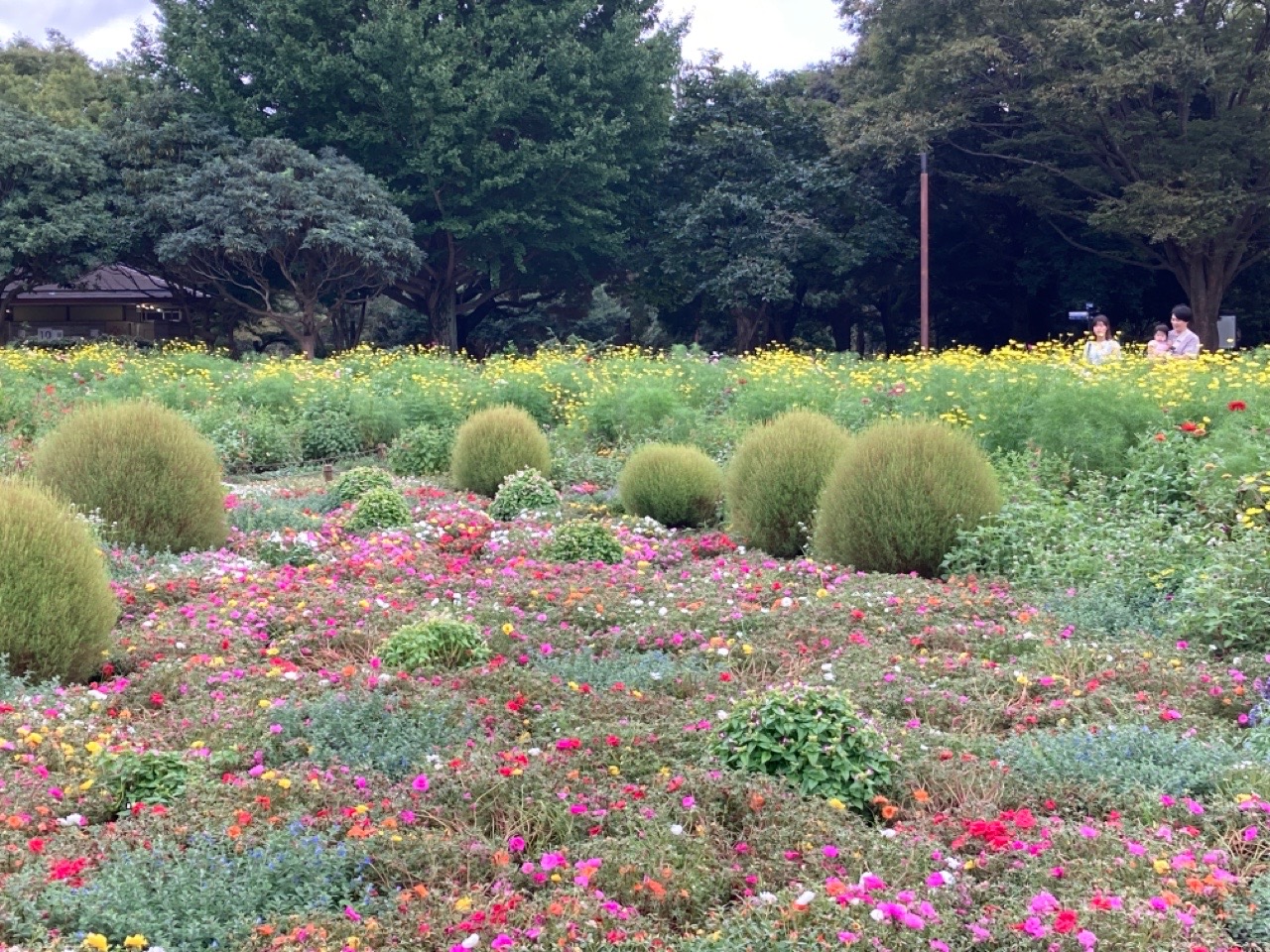 約20品種の花が咲く花畑です。マツバボタン、ジニア、ケイトウが咲きます。