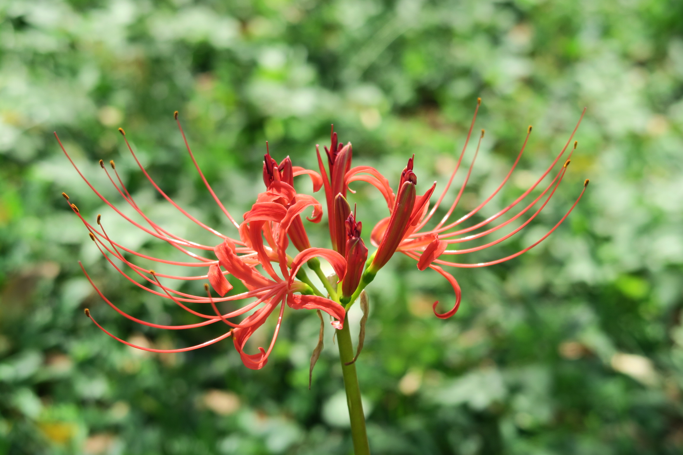曼殊沙華(まんじゅしゃげ)とも呼ばれ、赤い花弁が反り返った花姿が特徴的な花です。