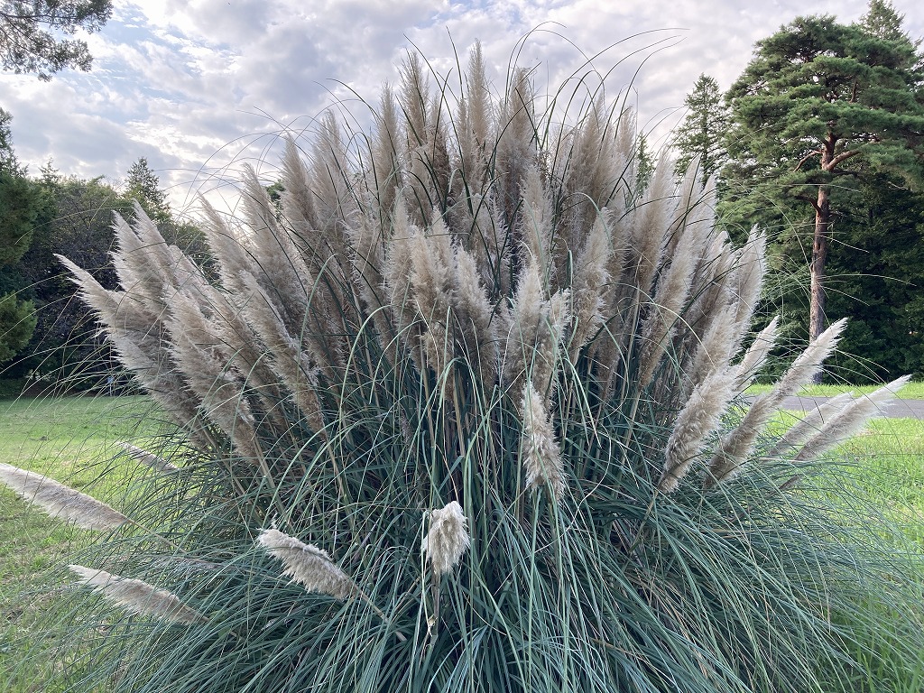 巨大なススキのような植物です。ふさふさとした花穂が特徴で、ガーデニングやドライフラワーとして人気があります。