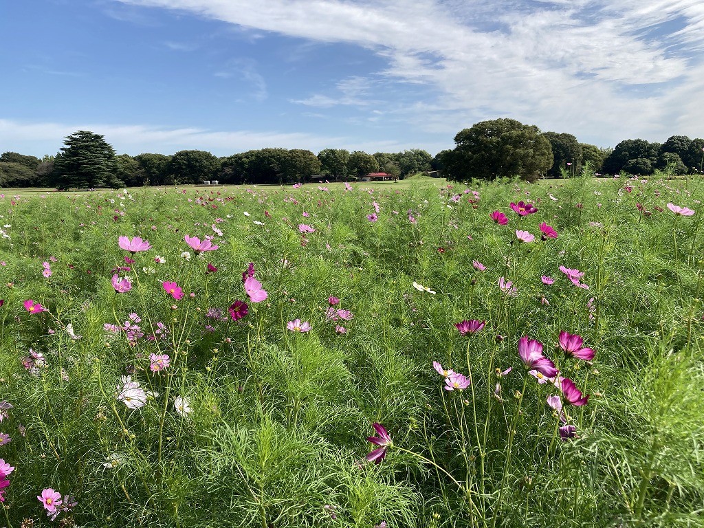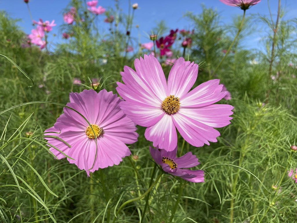 赤・ピンク・白色の花を咲かせる、なじみの深いコスモスです。