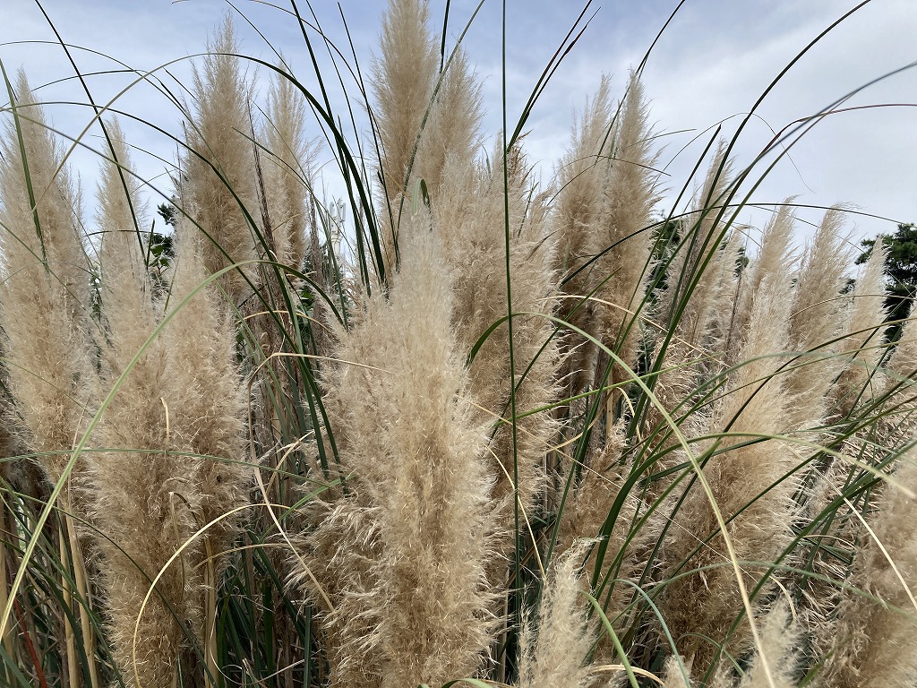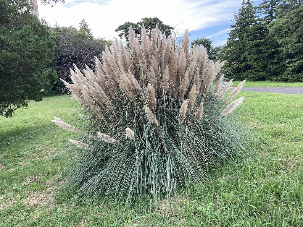巨大なススキのような植物です。ふさふさとした花穂が特徴で、ガーデニングやドライフラワーとして人気があります。