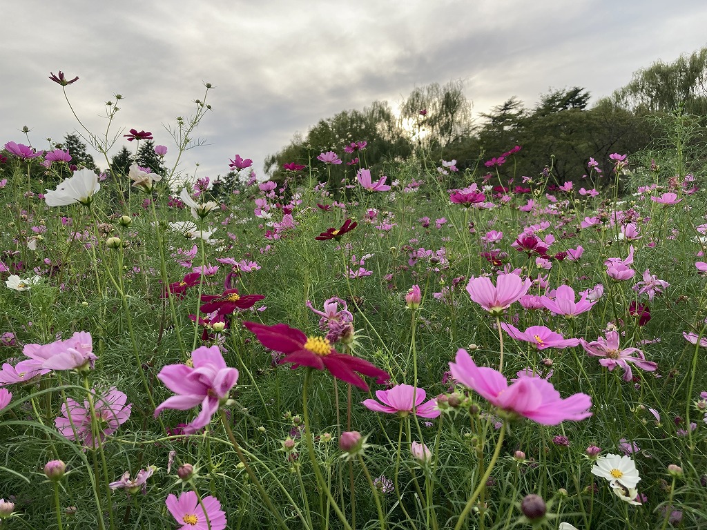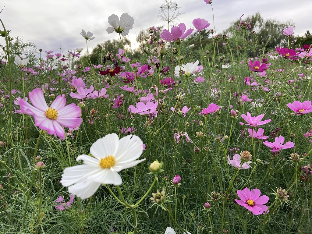 赤・ピンク・白色の花を咲かせる、なじみの深いコスモスです。