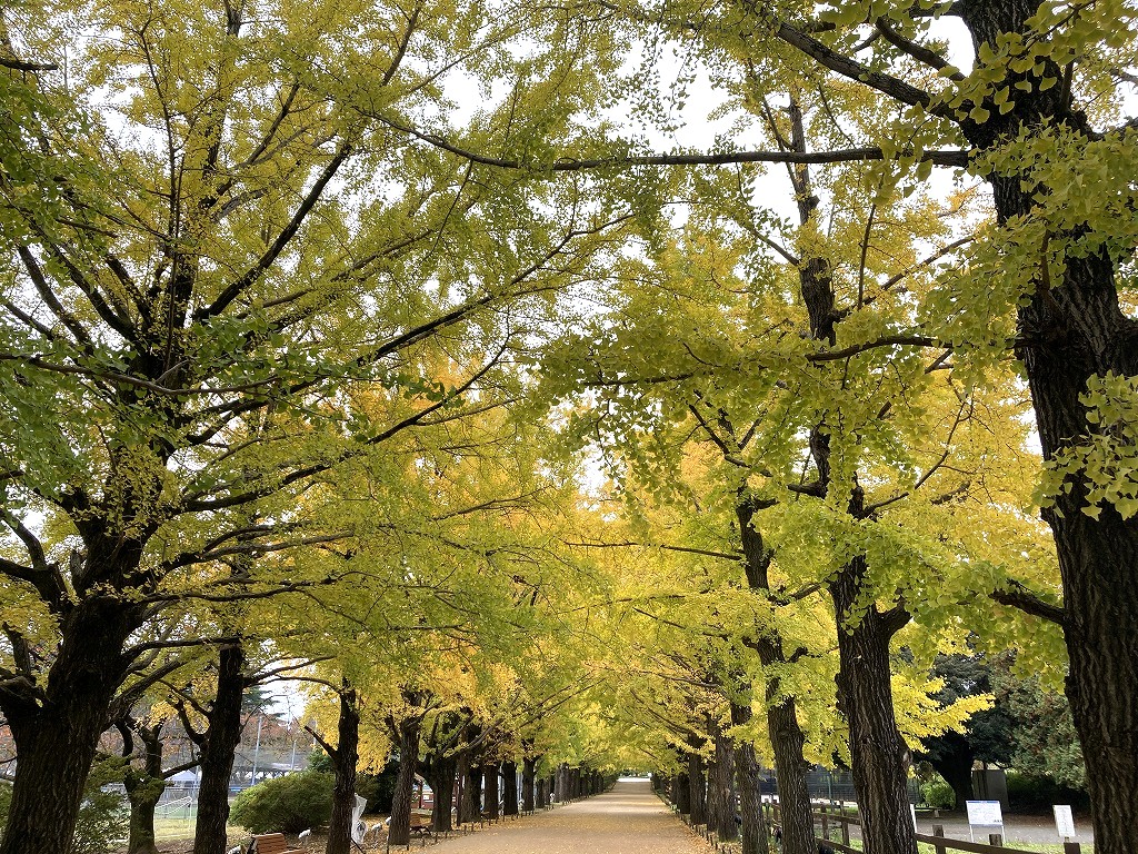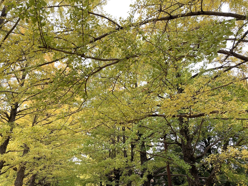 カナールのイチョウ並木が見頃です。11月下旬まで見頃が続く予想です。