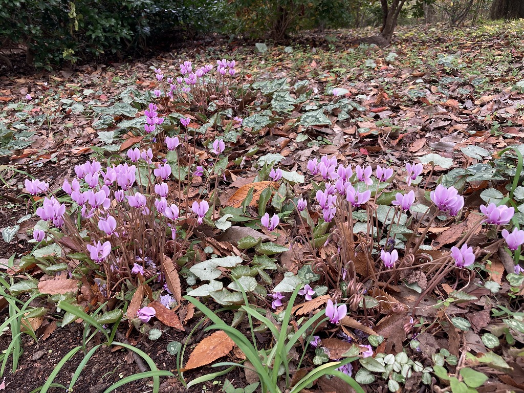 (イチョウ、カエデ類、コウテイダリア、原種シクラメン)
