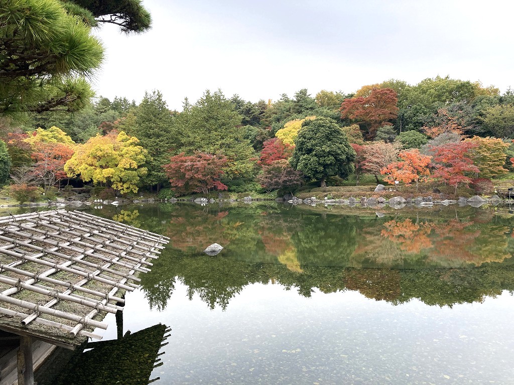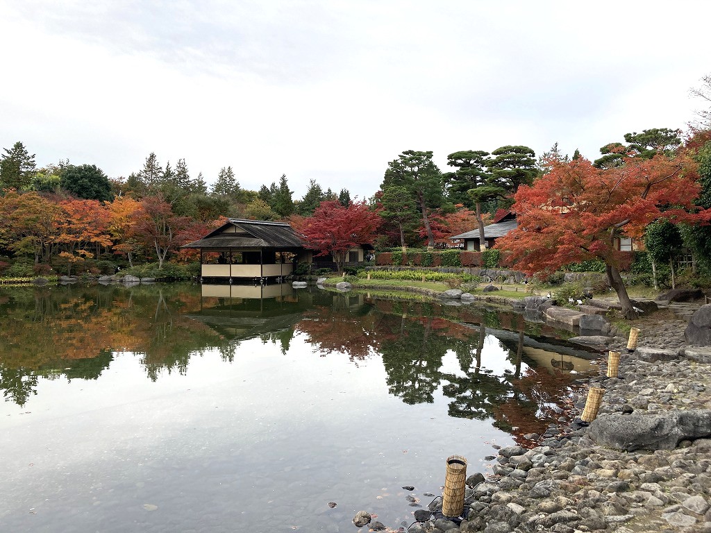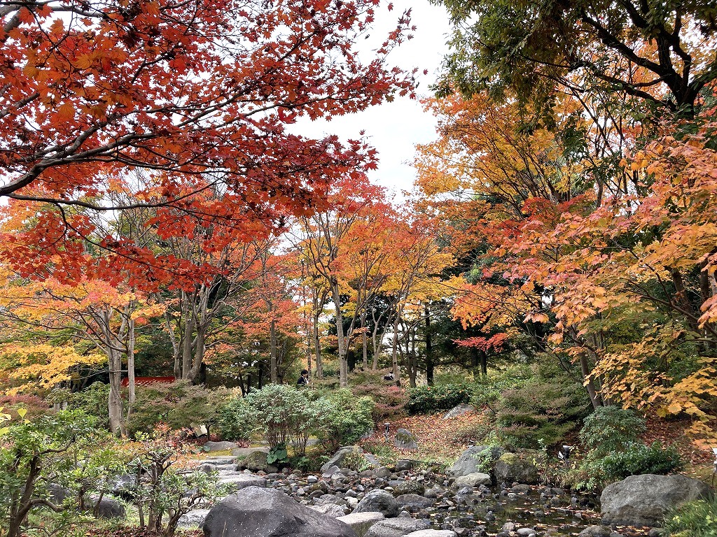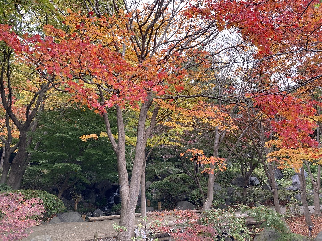 紅葉の代表的な樹木です。庭園内のカエデ類が見頃です。見頃は12月初旬まで続く予想です。