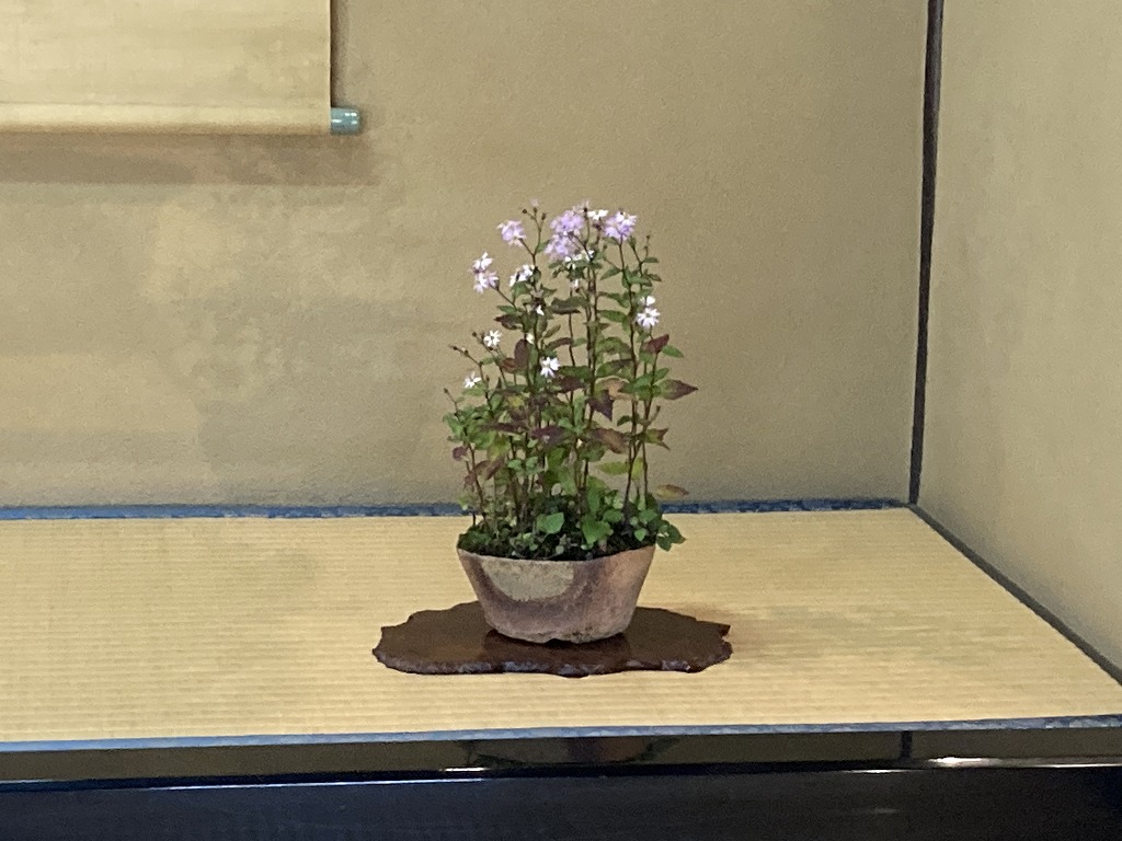 盆栽の「やまもみじ」と添え草の「キヨスミコンギク」をご覧いただけます。※季節に応じて展示を変更する場合があります。