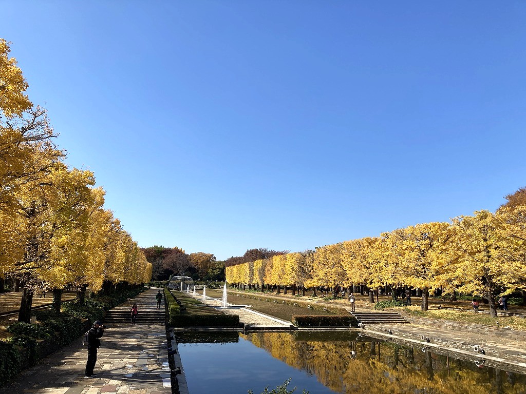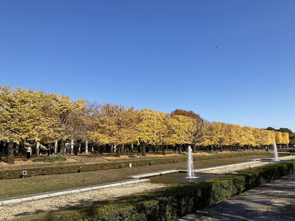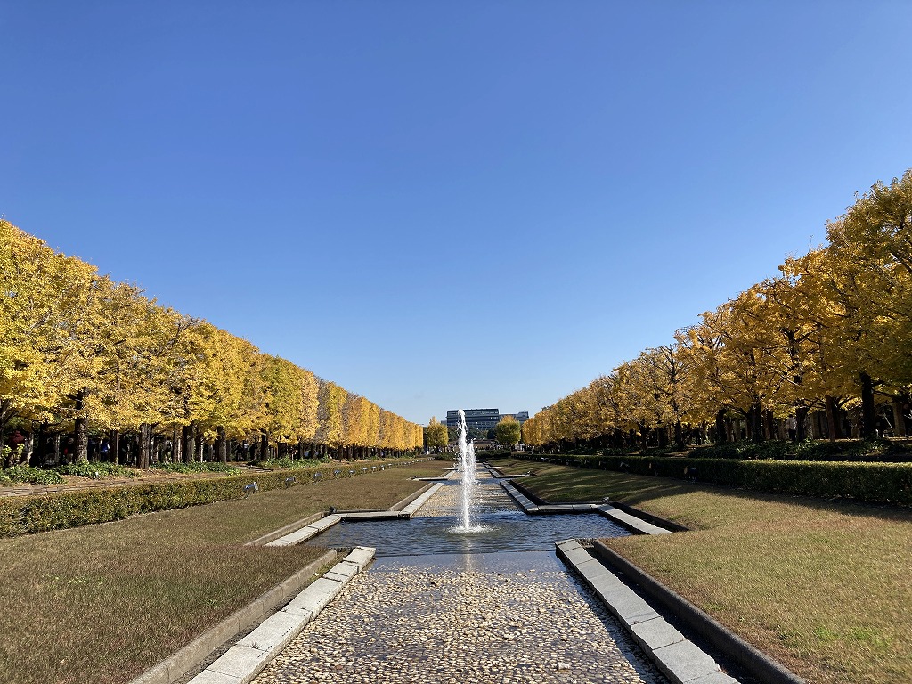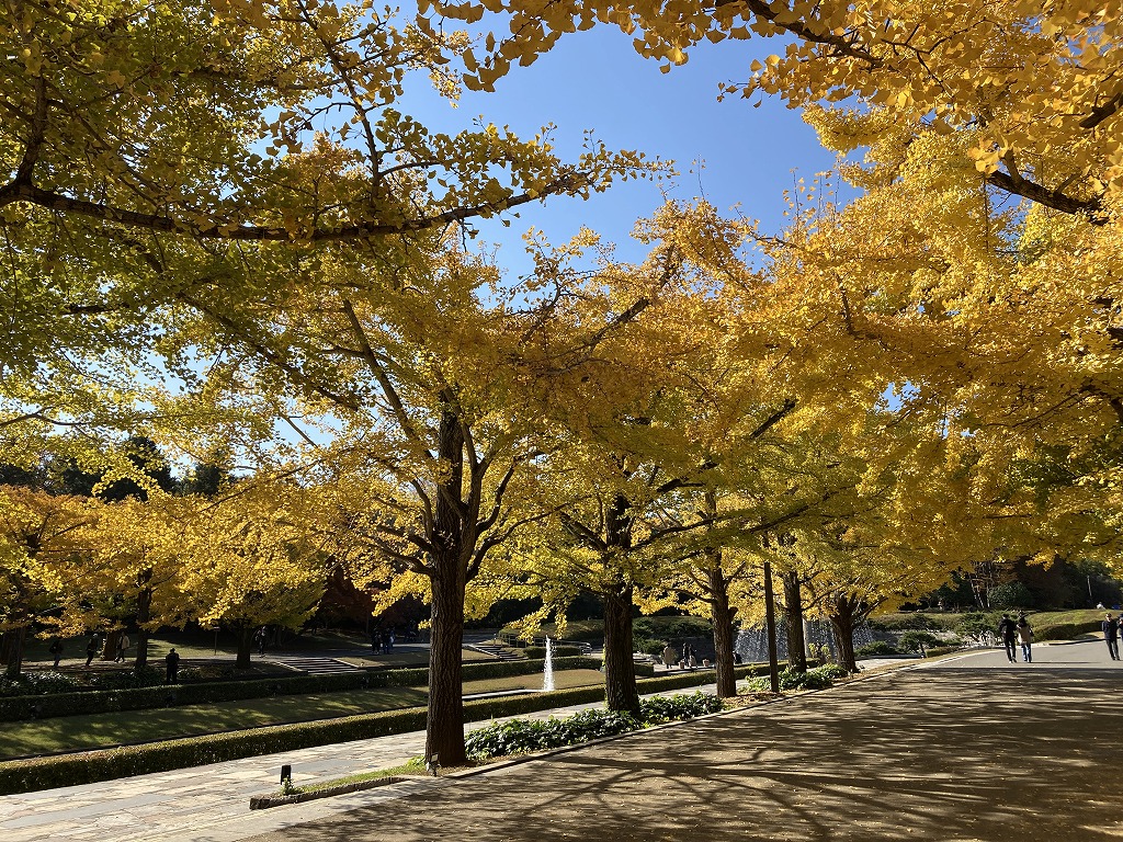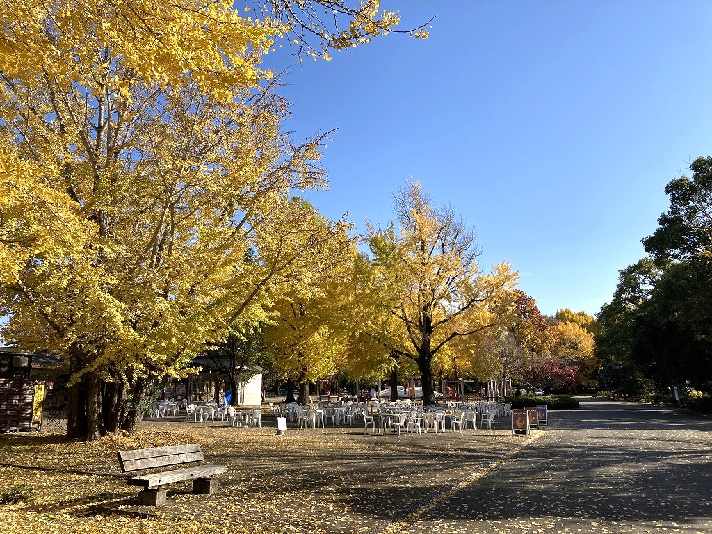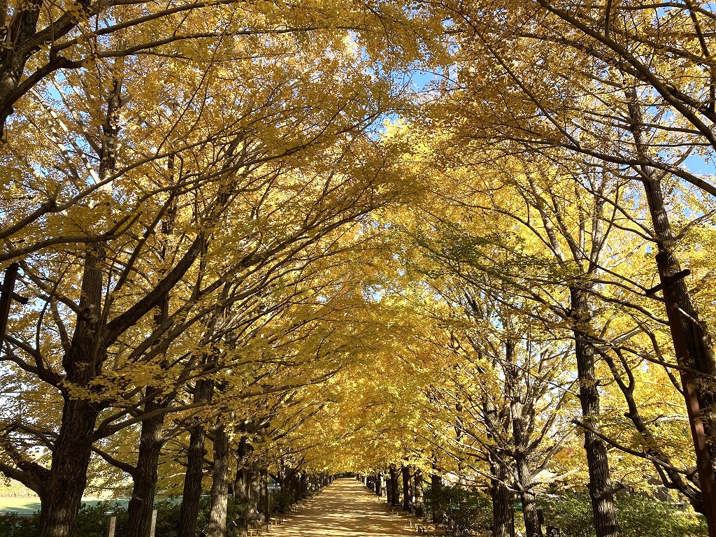 かたらいのイチョウ並木の他、わんぱくゆうぐなど園内各所でイチョウの黄葉が見頃です。11月いっぱいまでお楽しみいただける予想です。