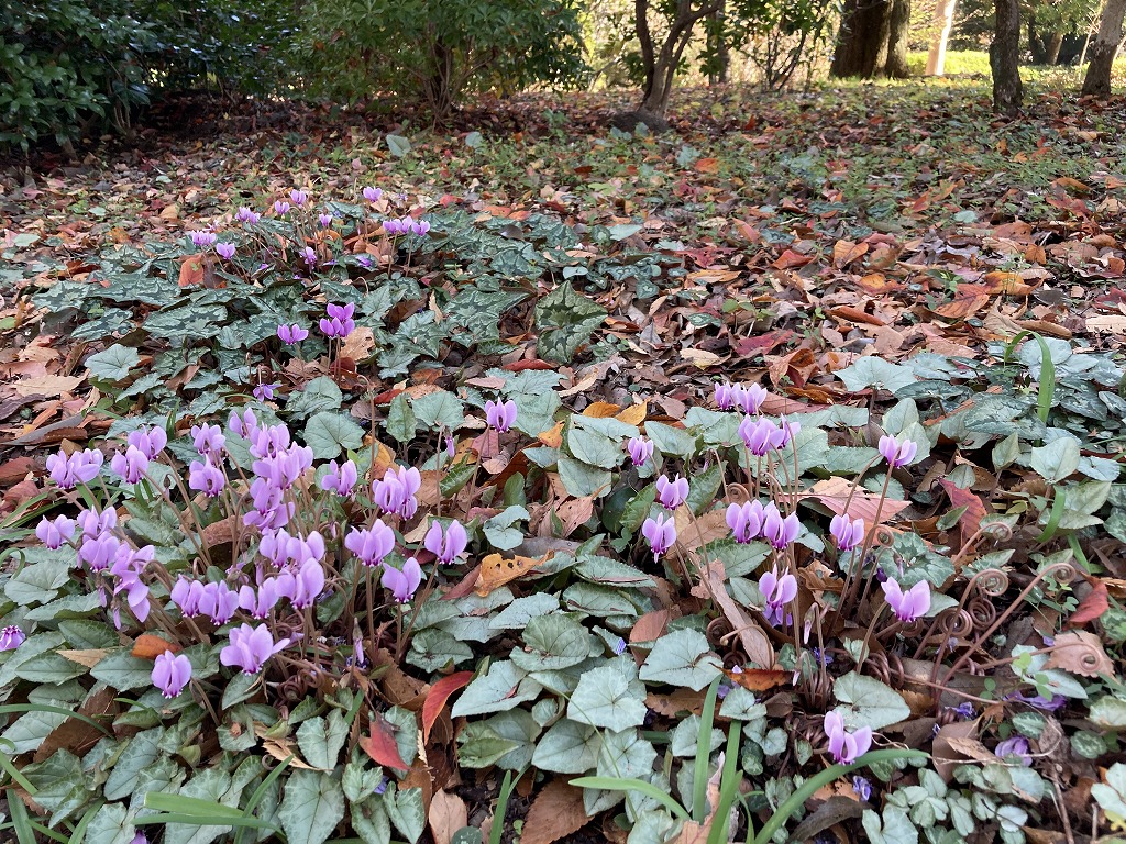 (イチョウ、カエデ類、メタセコイア、コウテイダリア、原種シクラメン)