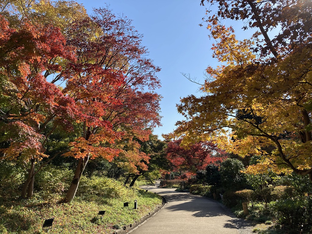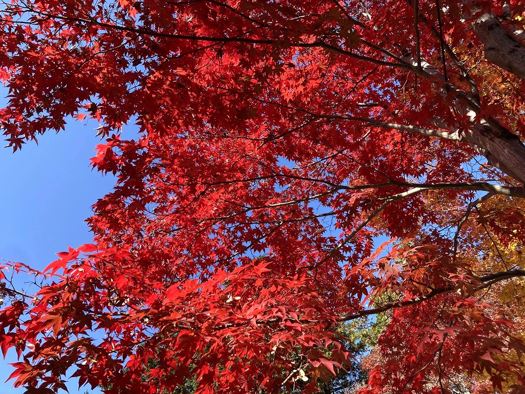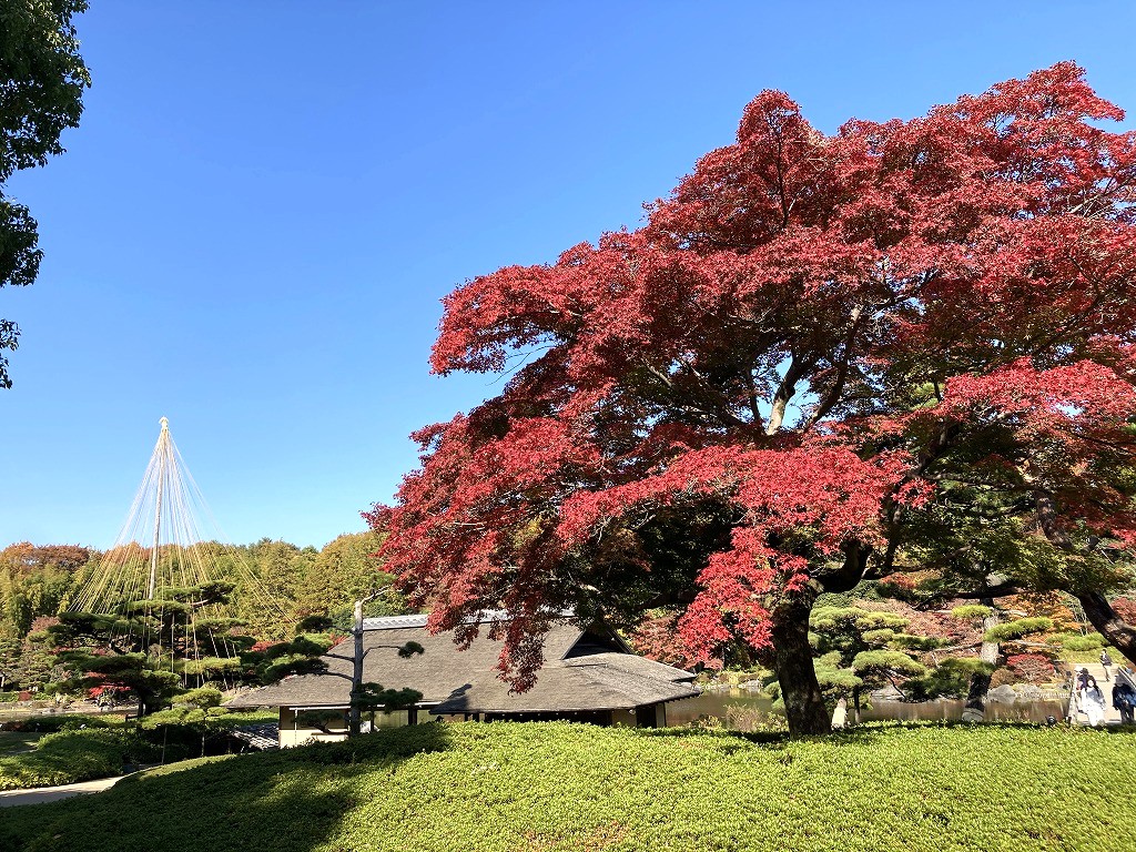 紅葉の代表的な樹木です。庭園内のカエデ類が見頃です。見頃は12月初旬まで続く予想です。