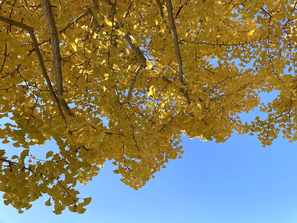 カナールのイチョウ並木の黄葉が見頃後半です。葉が落ち始めており、もうまもなく見頃が終了する予想です。