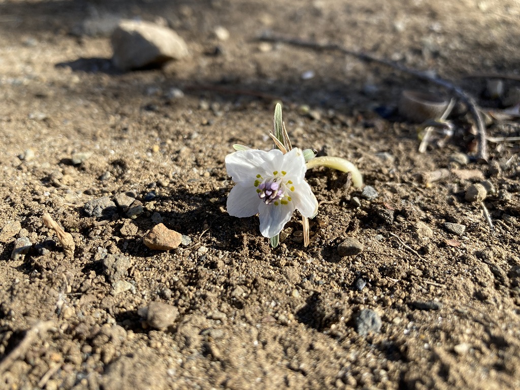 花茎の先に1㎝程度の小さな白い花が咲きます。日本原産の植物です。