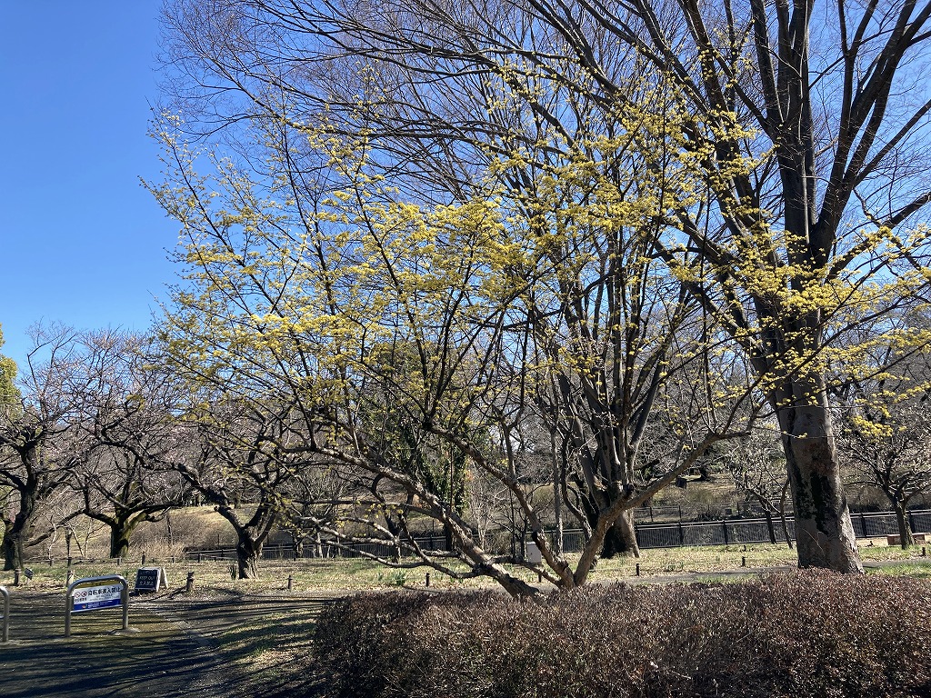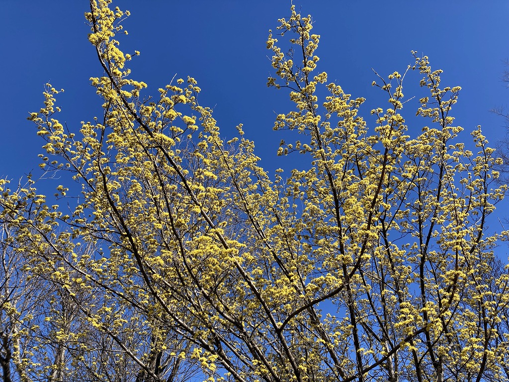 黄金色の花を咲かせる早春の花木です。葉の裏側に毛の塊が出来るのも特徴の一つです。